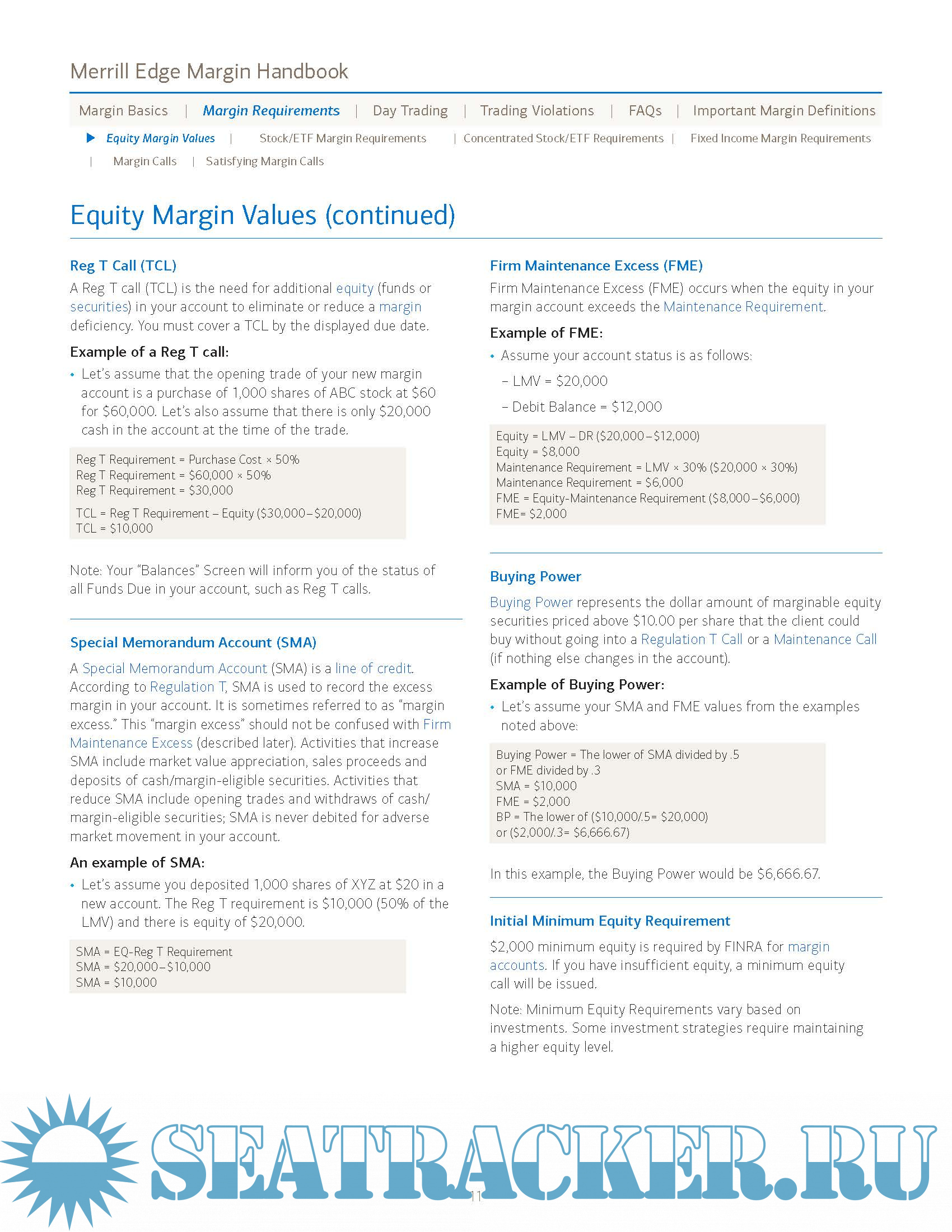 Year: 2018 Language: english Author: Merrill Edge Genre: Handbook Format: PDF Quality: eBook Pages count: 26 Description: In accordance with requirements of FINRA, Merrill Lynch is furnishing this Margin Risks Disclosure Statement. This document will provide some basic information about purchasing securities on margin and alert you to the risks involved with maintaining a margin account. Merrill Lynch refers to margin as the margin lending program. When you purchase securities, you may pay for the securities in full, or if your account has been established as a margin account with the margin lending program, you may borrow part of the purchase price from Merrill Lynch, thereby leveraging your investment. If you choose to borrow funds for your purchase, Merrill Lynch’s collateral for the loan will be the securities purchased, other assets in your margin account and your assets in any other accounts at Merrill Lynch other than retirement accounts (such as IRAs). If the securities in your margin account decline in value, so does the value of the collateral supporting your loan, and, as a result, we can take action, such as to issue a margin call and/or sell securities in any of your accounts held with us, in order to maintain the required equity in your account. If your account has a Visa® card and/or checks, you may also create a margin debit if your withdrawals (by Visa card, checks, preauthorized debits, FTS or other transfers) exceed the sum of any available free credit balances plus available money account balances (such as bank deposit balances or money market funds). Please refer to your account documents for more information.