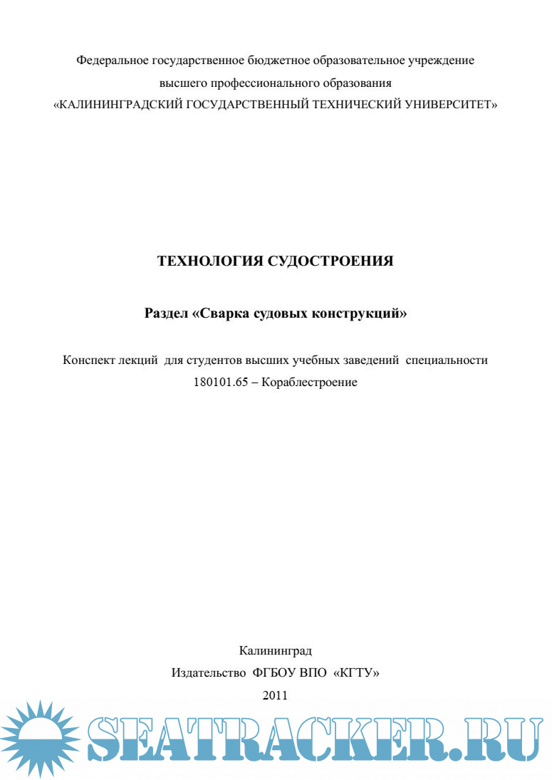 Год выпуска: 2011 Язык: русский Автор: Морозов В.Н. Жанр: Учебное пособие Издательство: ФГБОУ ВПО "КГТУ" Формат: PDF Качество: Изначально компьютерное (eBook) Количество страниц: 130 Описание: В данном издании рассмотрены основные понятия и определения сварки, способы сварки в судостроении, источники питания, сварочные материалы, металлургические процессы при сварке, основные дефекты сварных конструкций, методы контроля качества сварных соединений. Учебное пособие (конспект лекций) написан в соответствии с программой курса «Технология судостроения» - раздел сварка судовых конструкций. Издание предназначено для студентов, обучающихся в рамках государственного образовательного стандарта по специальности 1801101 «Кораблестроение».