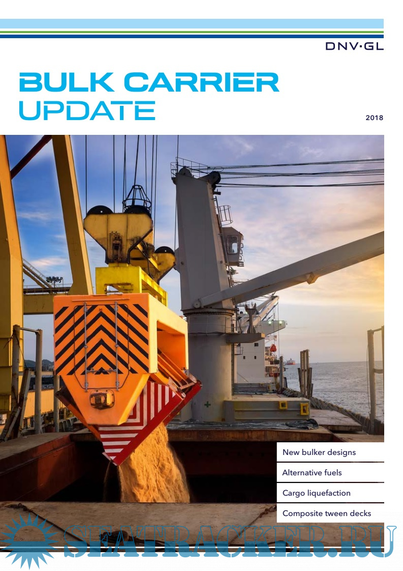 Year: 2018 Language: english Author: DNVGL Format: PDF Quality: eBook Pages count: 28 Description: To support the industry in complying with the new environmental regulations, especially those focusing on air emissions, DNV GL participates in several joint industry projects (JIP) to help develop new, compliant designs that will give shipping a “greener footprint”. In this issue of BULK CARRIER UPDATE, I would like to direct your particular attention to: - the recent delivery of the world’s largest dry cargo vessel – Yuan He Hai, a 400,000 dwt ore carrier with innovative design features such as gas-ready. Also, as a specially constructed or fitted cargo ship she will be able to safely carry ore with a high moisture content - the current status of the Green Corridor JIP currently developing an LNG-fuelled VLOC for the Australia-China trade - the next-generation Ultramax bulk carrier with ultra-low fuel consumption at eco-speed – the 63,200 dwt “Diamond 2” Ultramax.