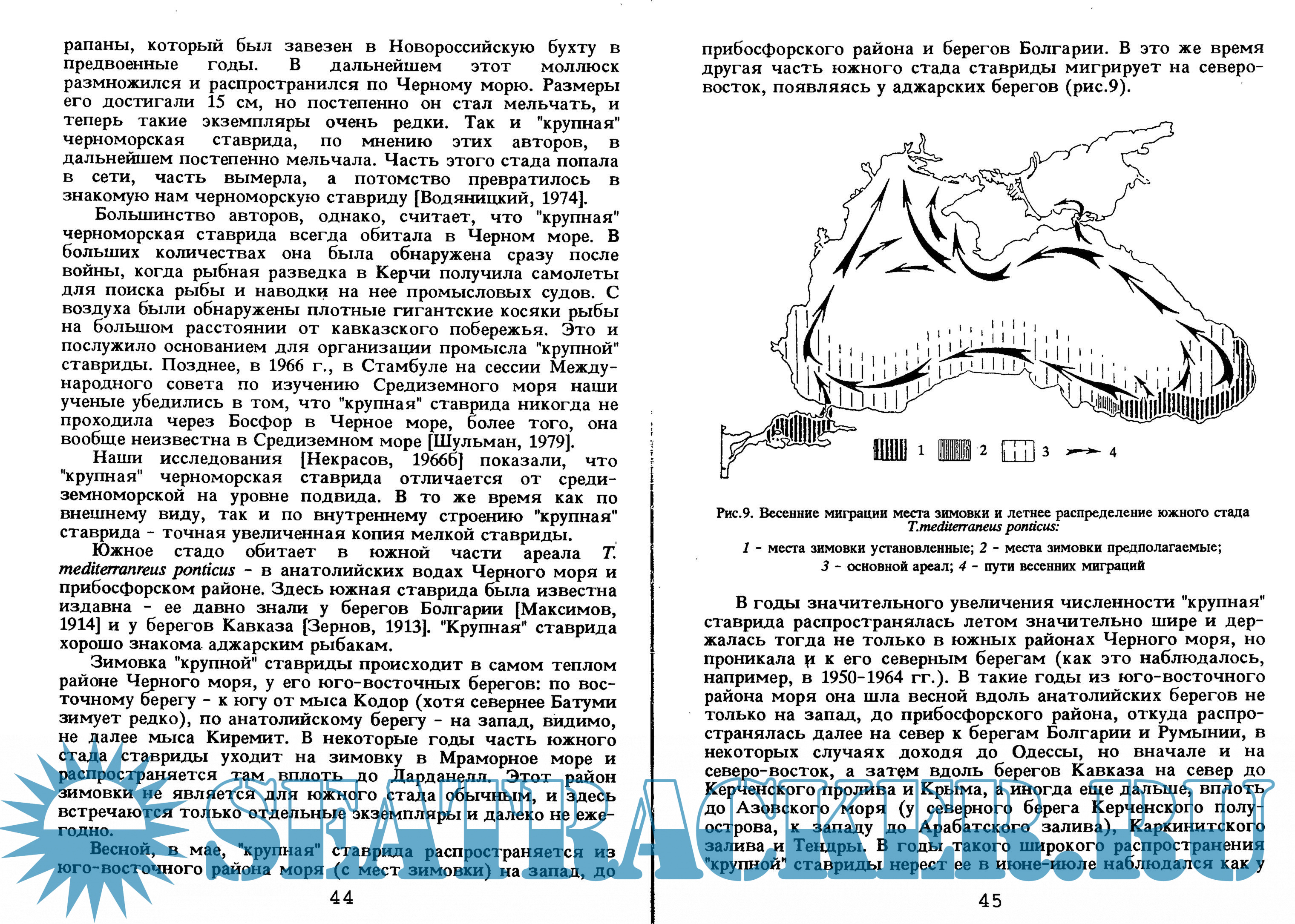 Год выпуска: 1994 Язык: русский Автор: Некрасов В.В. Жанр: Справочное издание Издательство: ВНИРО ISBN: 5-85382-118-0 Формат: PDF Качество: Отсканированные страницы Количество страниц: 227 Описание: Монография посвящена описанию ставрид рода Тrachurus. Даны распределение ставрид в бассейнах Тихого, Атлантического и Индийского океанов, их систематическое положение, синонимика, характеристика основных черт биологии всех известных видов рода. Показаны некоторые закономерности формирования численности наиболее массовых видов ставрид с учетом среды их обитания и интенсивности изъятия промыслом. Приведены данные по развитию и динамике отечественного промысла ставрид в Мировом океане. Дано описание технико-химического состава ставрид в сезонной и возрастной динамике, а также их пищевой ценности и рекомендации наиболее рационального изъятия основных промысловых видов. Рекомендованы орудия лова, места и сезоны промысла ставрид в Мировом океане. Монография рассчитана на широкий круг специалистов-биологов, работников рыбной промышленности, экономистов, студентов и любителей природы.