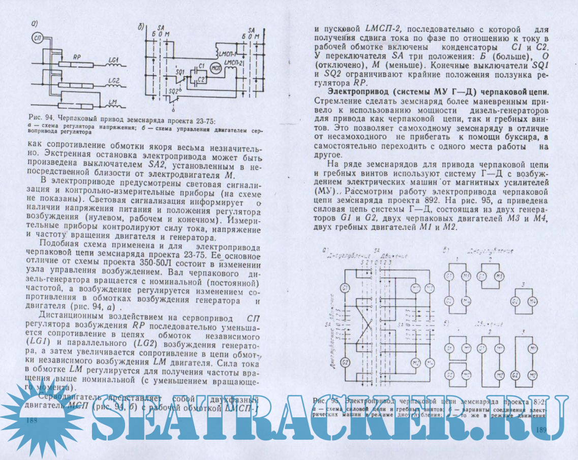 Год выпуска: 1986 Язык: русский Автор: Семенов Ю.А., Иванов В.И. Жанр: Учебное пособие Издательство: Транспорт Формат: PDF Качество: Отсканированные страницы Количество страниц: 284 Описание: Изложены сведения об условиях работы и эксплуатации электрооборудования земснарядов, рассмотрены электрические станции, сети и распределительные устройства, электрическое освещение, аппаратура и судовая связь. Особое внимание уделено электроприводам земснарядов. Освещены вопросы технической эксплуатации электрооборудования и электробезопасности, по автоматическим системам управления, элементам автоматики, теории привода и управлению им; приводятся данные по энергетическим системам и описание схем электроприводов многочерпаковых и землесосных снарядов; описываются вопросы автоматизации технологического процесса.