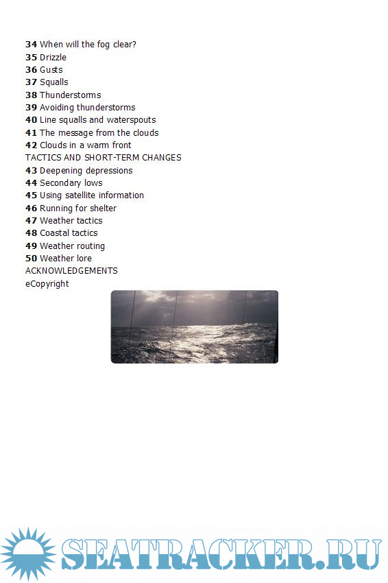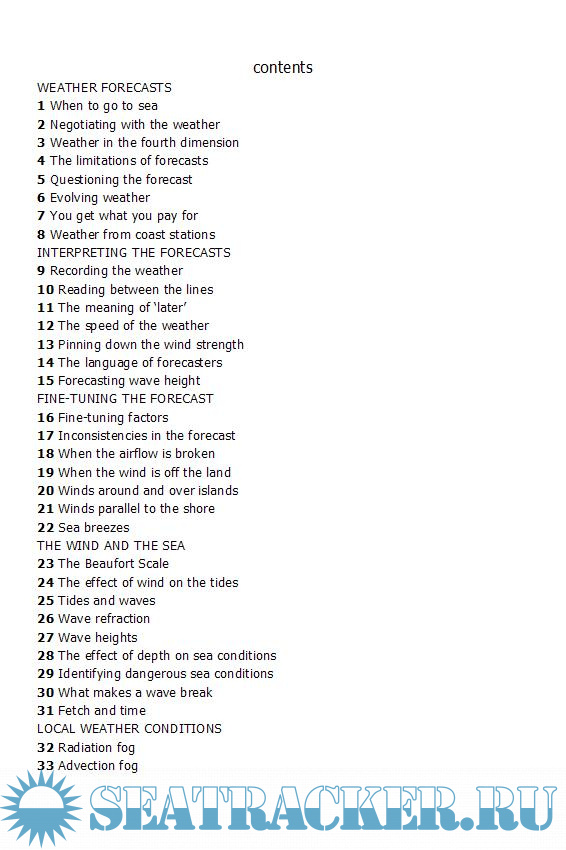 Year: 2014 Language: english Author: Dag Pike Genre: Guide Format: EPUB Quality: Scanned pages + text layer Number of pages: 101 Description: This is a book about practical weather forecasting, and it starts where most other books finish. Weather forecasts give you a lot of information about the weather to come but they often leave out a lot of the detail, and the timing of changes can also be vague. In this book, Dag Pike shows how to translate the basics into practical weather forecasts so that you can work out what it will be like in your area and along your proposed route. Sailors will be able to make better use of the available wind and avoid difficult areas, whilst powerboat drivers more interested in the sea conditions will be able to find the smoothest waters for a better ride.
