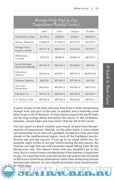 Experienced travelers rarely get their information from one source, and I wouldn’t expect that you would so limit yourself. Because the port information is geared to the general traveler with only a single day of time available, you should do further research if a particular destination is of special interest to you. Obtaining a guidebook on that place would be of great use. As you peruse this book you’ll learn that a host of cruise lines serve the Caribbean. I encourage everyone to visit their local travel agent and grab a stack of cruise brochures. In combination with the information in this book, they will further help you to decide which ship is right for you. Always remember, however, that glossy brochures are carefully designed to get your business. Be a thoughtful consumer.
