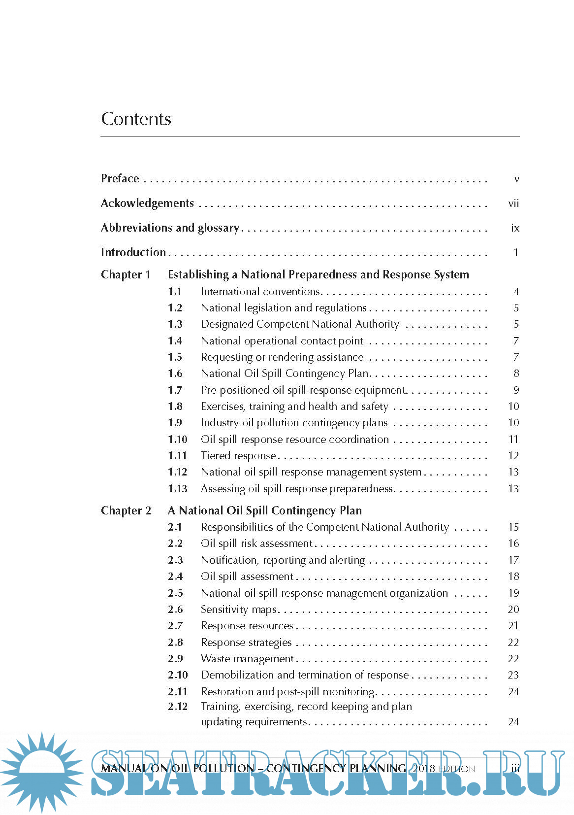 Year: 2018 Language: english Author: IMO Genre: Manual Publisher: CPI Colour Edition: Fourth ISBN: 978-92-801-1666-3 Format: PDF Quality: eBook Pages count: 116 Description: This publication aims to assist governments in establishing a national oil spill response system and, in developing or revising their national oil spill contingency plans. The manual also includes information related to contingency planning for offshore installations, sea ports and oil handling facilities.