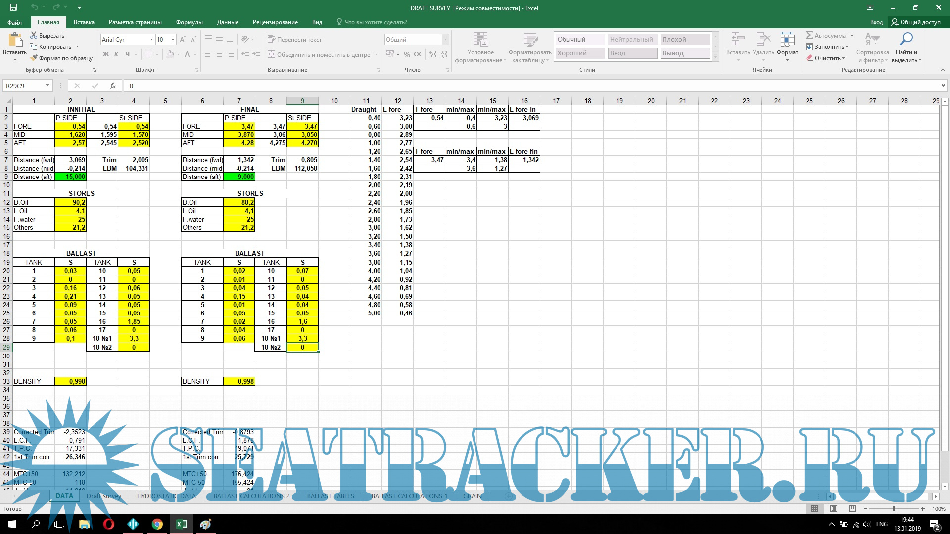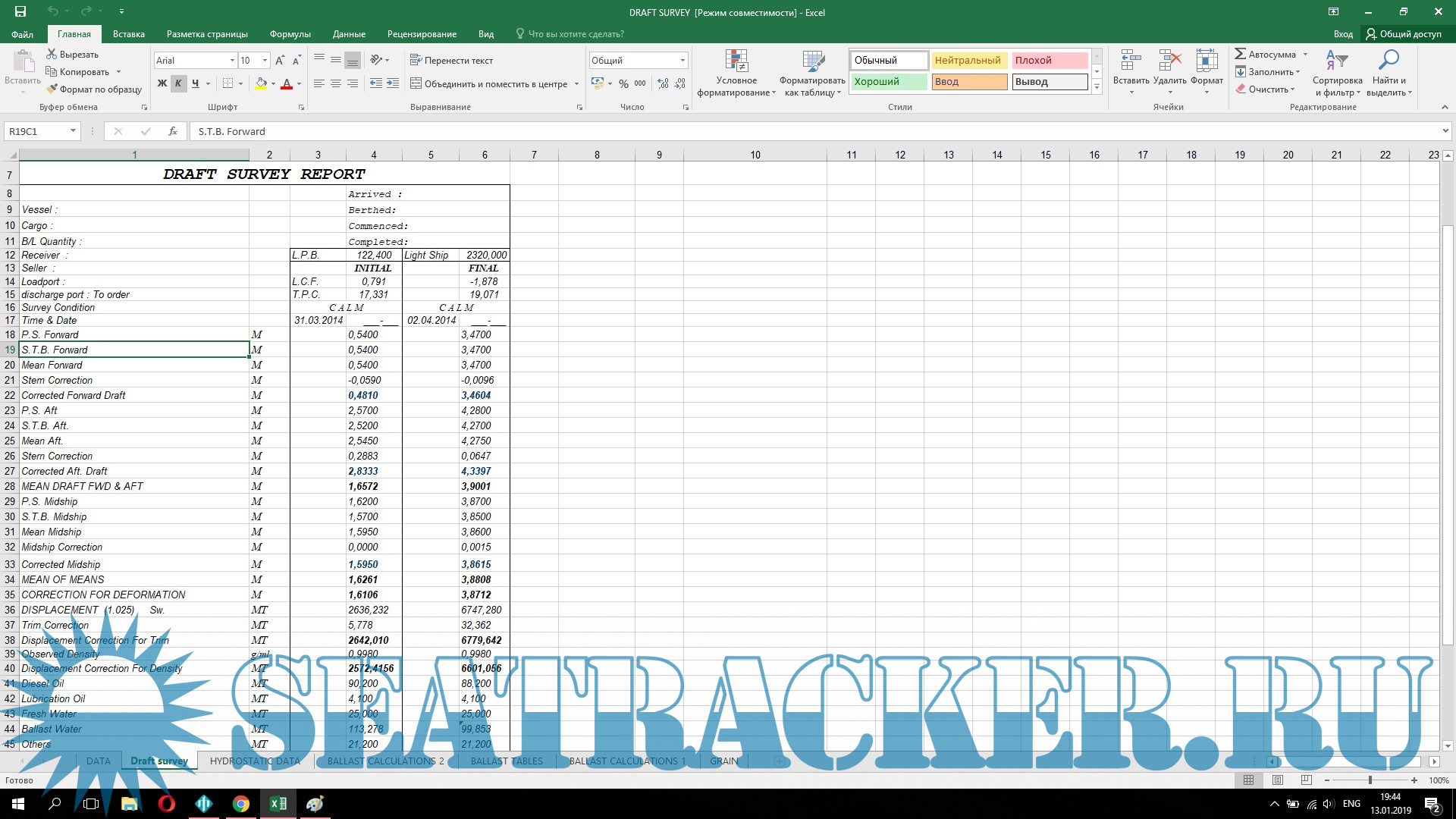 Описание: Расчетная программа Draft Survey