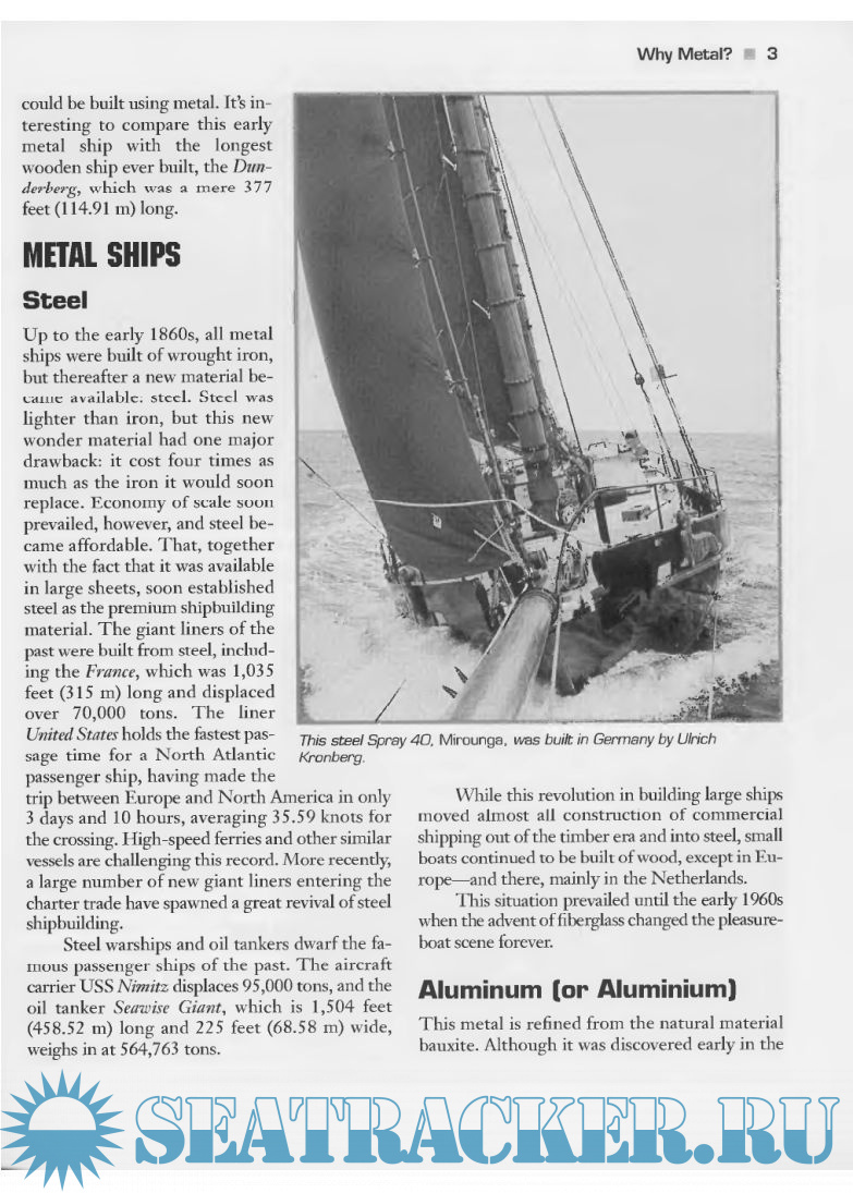 Year: 2001 Language: english Author: Roberts-Goodson Bruce Publisher: McGraw-Hill Edition: Revised and expanded ISBN: 0-07-136444-7 Format: PDF Quality: Scanned pages Pages count: 300 Description: For anyone even considering building, buying, or renovating a metal boat, this must-have resource provides a thorough overview of steel, aluminum, and copper-nickel boat construction. Written by one of the world’s most experienced small-craft designers, Metal Boats explains the advantages of metal; how to buy it; how to cut and weld it; how to build or refurbish hulls, decks, and superstructures with it; and how to finish it. The book also covers engineering for metal boats, corrosion prevention, interior design and construction, electrical systems, appendages, fittings, and a portfolio of designs for metal powerboats and sailboats