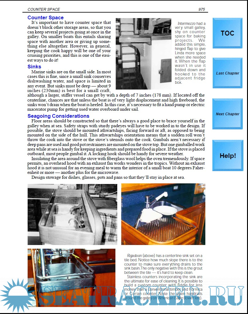 Year: 1998 Language: english Author: Linda and Steve Dashew Genre: Encyclopedia Publisher: Beowulf , Inc. Edition: CD-ROM Format: PDF Quality: eBook Pages count: 1232 Description: The Dashews' tome works in three distinct ways. First, it's a fine reference work from which to get a good background on every conceivable aspect of cruising boats from the bottom of the keel to the top of the mast. Everything from the compressive yields of rudder bearings to bunk dimensions to price comparisons of different hull materials. Secondly, there is sensible advice on a world of topics of interest to cruisers — such as the pros and cons of different styles and types of boats, rigs, anchors, and such; on the possibilities of making money while cruising; on how to get along with locals, and so forth. Thirdly, many of the encyclopedia's topics are backed with anecdotal stories from the Dashews' seemingly unlimited number of cruising friends and acquaintances. As such, The Offshore Cruising Encyclopedia makes for enjoyable bedtime reading for nontechnical sailors, too... Additional info: Offshore Cruising Encyclopedia on CD-ROM version 2.1 This CD-ROM is designed to complement the printed book. You can use your computer to search for specific topics, navigate quickly through the book, print pages, and zoom in on any of the thousands of color illustrations that you may want to study in more detail.