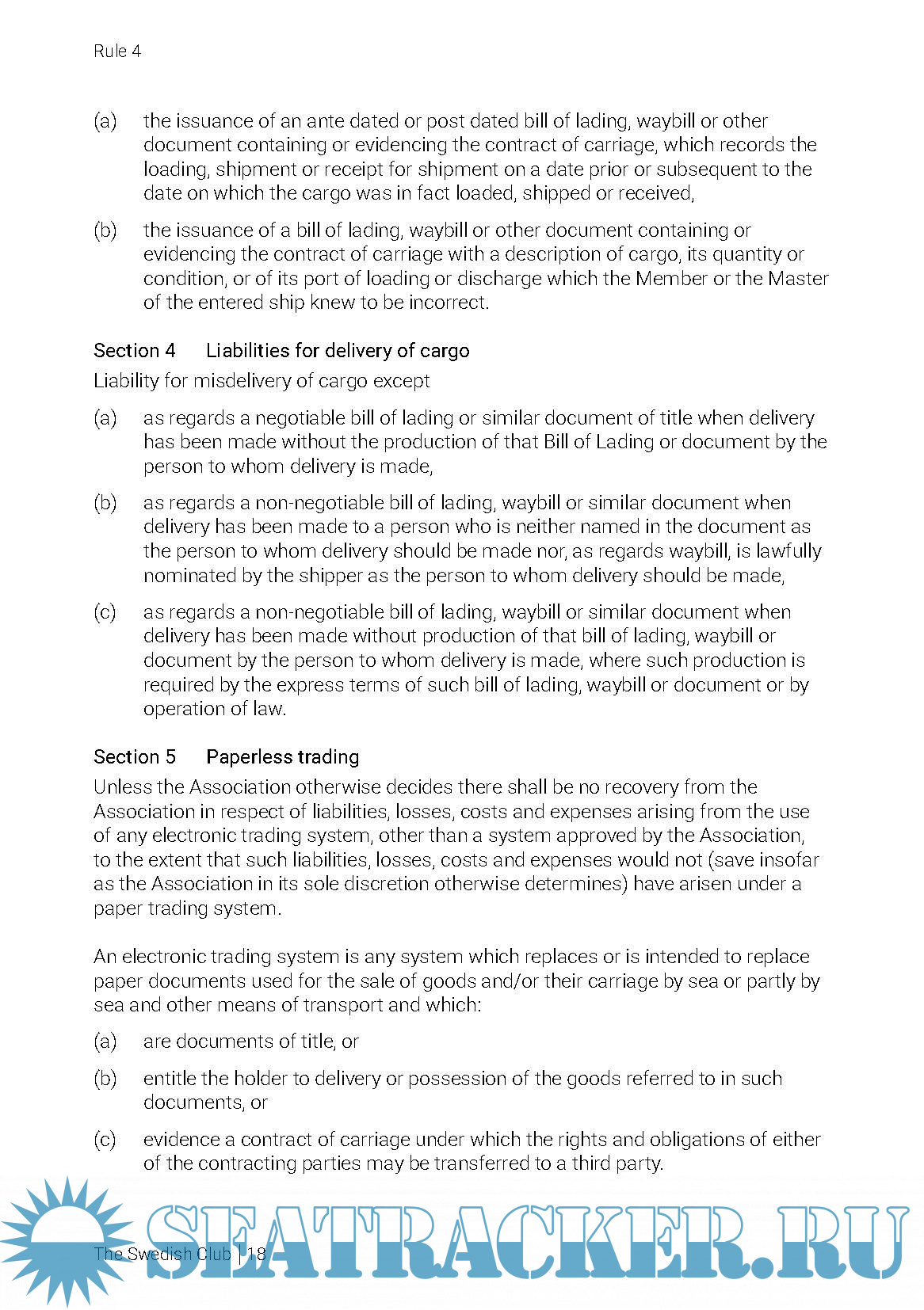Description: The Swedish Club Rules for Protection & Indemnity Insurance 2018/2019
