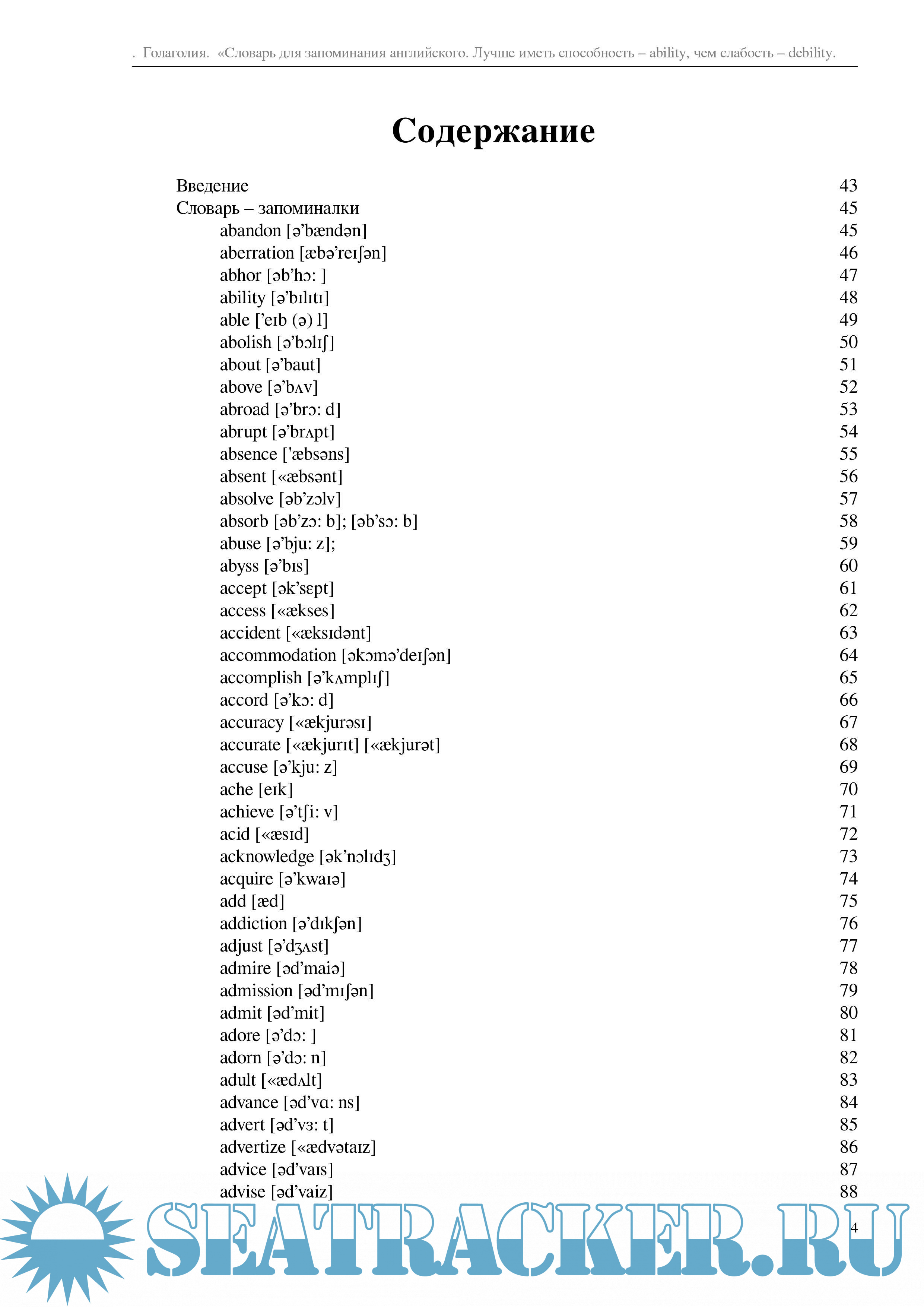 Содержание 4 Введение 43 Словарь – запоминалки 45