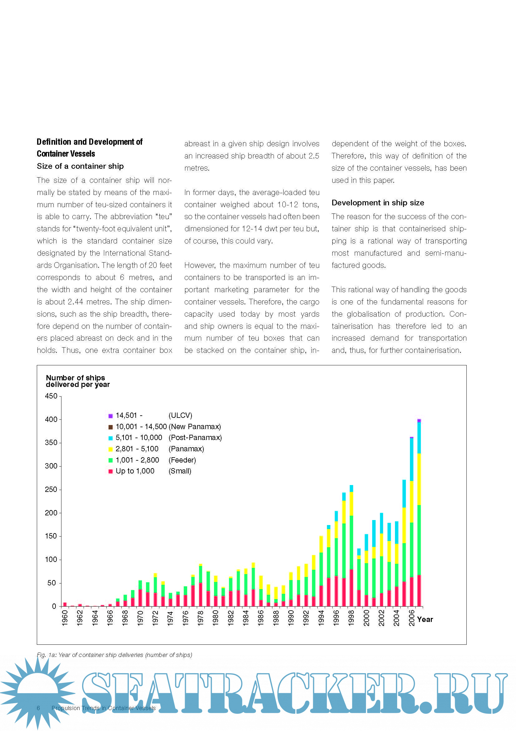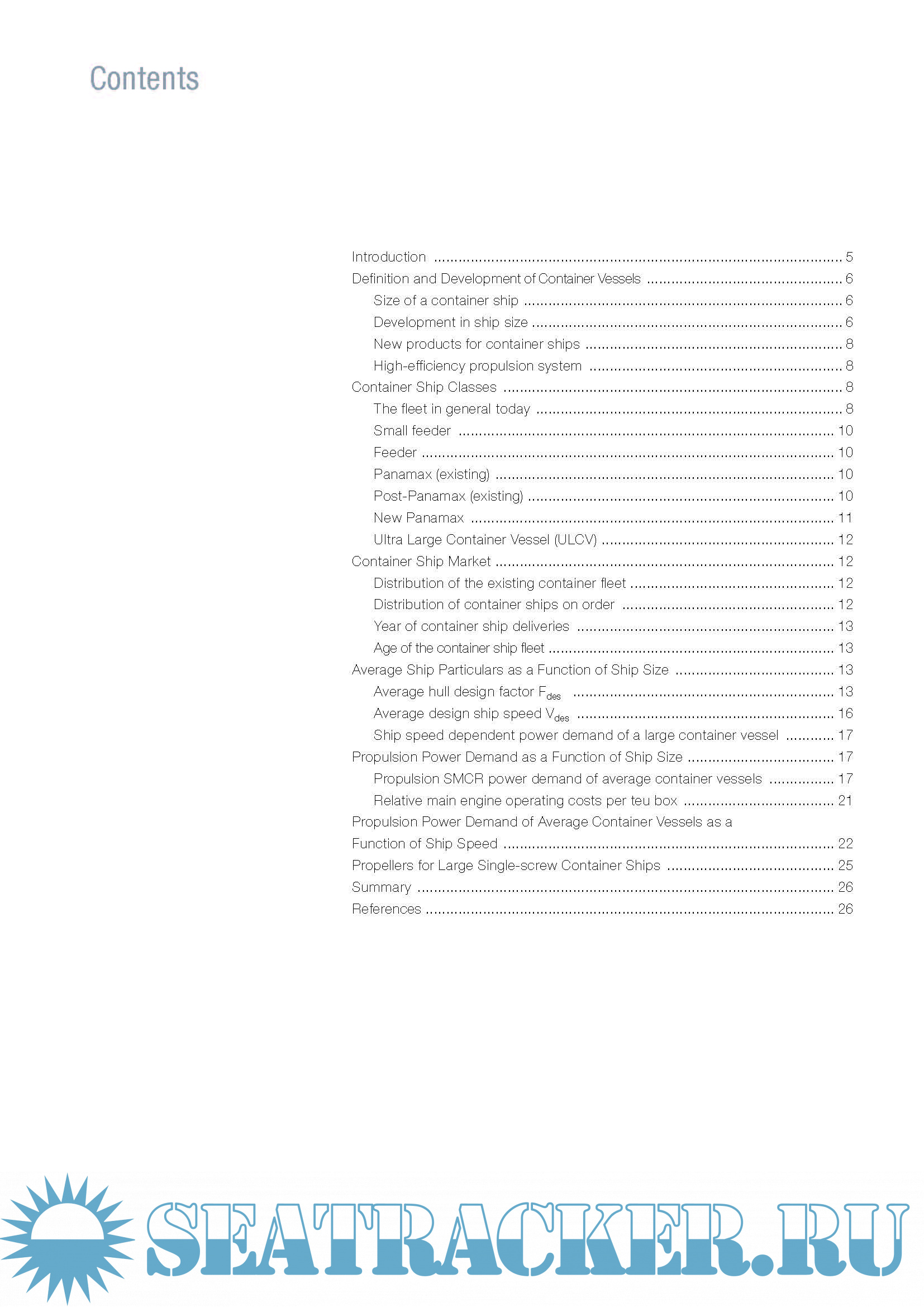 Description: The purpose of this paper – dealing with container ship sizes above 400 teu, and based on an analysis of container vessels ordered and built over the last five years – is to illustrate the latest ship particulars used for modern container ships and determine their impact on the propulsion power demand and main engine choice, using the latest MAN B&W two-stroke engine programme as the basis.