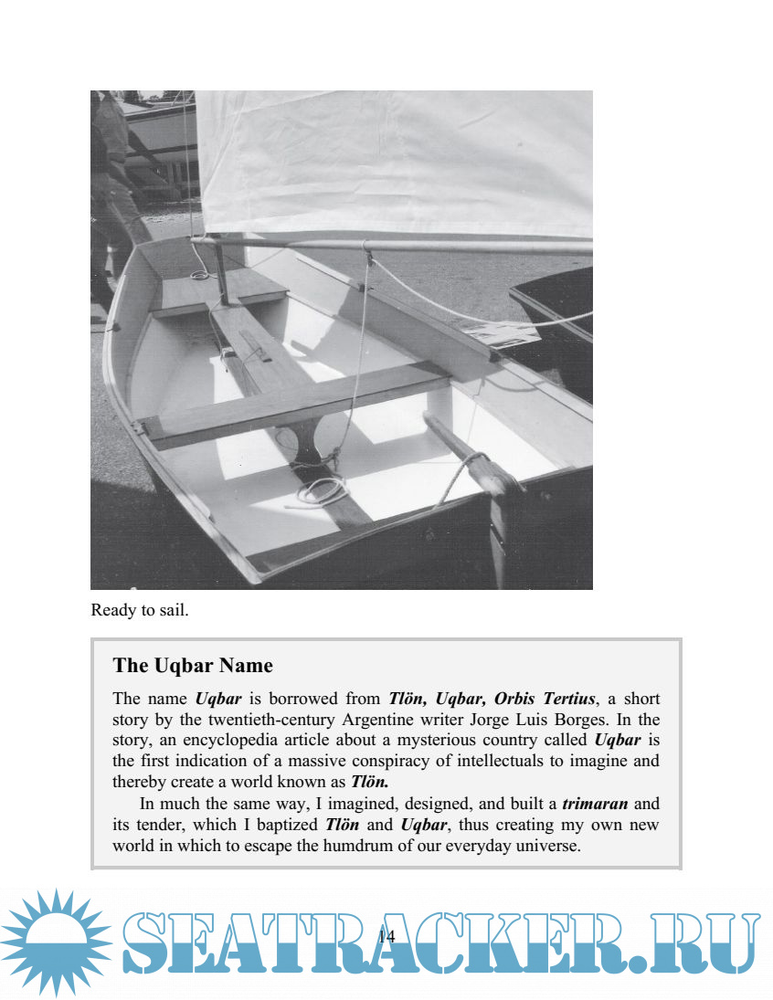 Year: 2014 Language: english Author: Redjeb Jordania Genre: Practical guide Publisher: International Marine/Ragged Mountain Press ISBN: 978-0-07-182965-6 Format: PDF + epub Quality: eBook Pages count: 191 Description: In following five easy steps you can build yor own boat: — CUT all parts to exact shape with the help of our cutting diagrams. — EPOXY fiberglass tape on the outside of the seams. — STITCH the hull panels together with metal or plastic wire-ties. — SNIP OFF the wire ends on the outside and fair. — GLUE the panels together by spreading epoxy putty over the wires In just a long weekend or a few evenings, you can realize your boat dreams with the guidance and detailed instructions offered in Building the Uqbar Dinghy. Boatbuilder/designer Redjeb Jordania walks you through the building process with advice on materials, techniques, tricks and traps, and more. Inside you will find: — Plans and cutting diagrams for all models, including rowing as well as sailing versions — A captioned Visual Guide that will show you all the steps and illustrates vividly the techniques used in building an Uqbar — Detailed step-by-step instructions — First-hand descriptions from boat enthusiasts of their experiences building the dinghy on their own to give you the confidence that you can do it, too — A glossary of terms related to the building process — A list of suppliers so you can easily find what you need