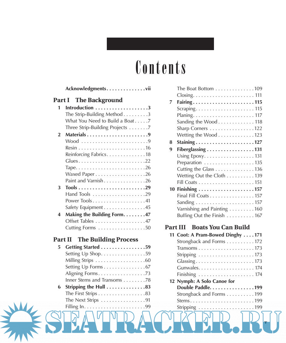 Description: This book describes the procedure of building a boat with strips of wood, covering those strips with fiberglass and epoxy and creating a strong, lightweight and beautiful boat from the beginning stages all the way through to completion. It provides instructions to build three very different boat, a pram style dinghy, a small, double-paddle canoe, and a high performance sea kayak. Beyond learning how to build these particular boats, the book provides enough background that you should be able to build just about any small boat using the strip-planked method.