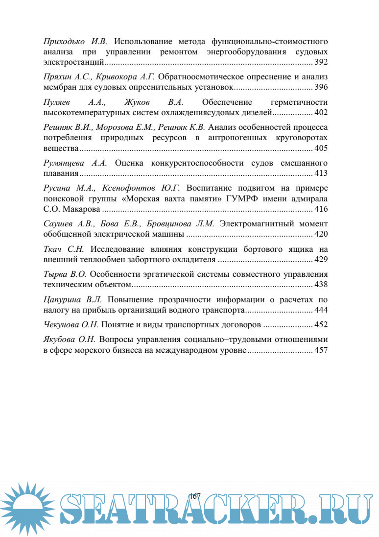 Опубликованы результаты прикладных научных исследований профессорско-преподавательского состава и научных сотрудников Государственного университета морского и речного флота имени адмирала С. О. Макарова и участников конференции, по следующим направлениям: