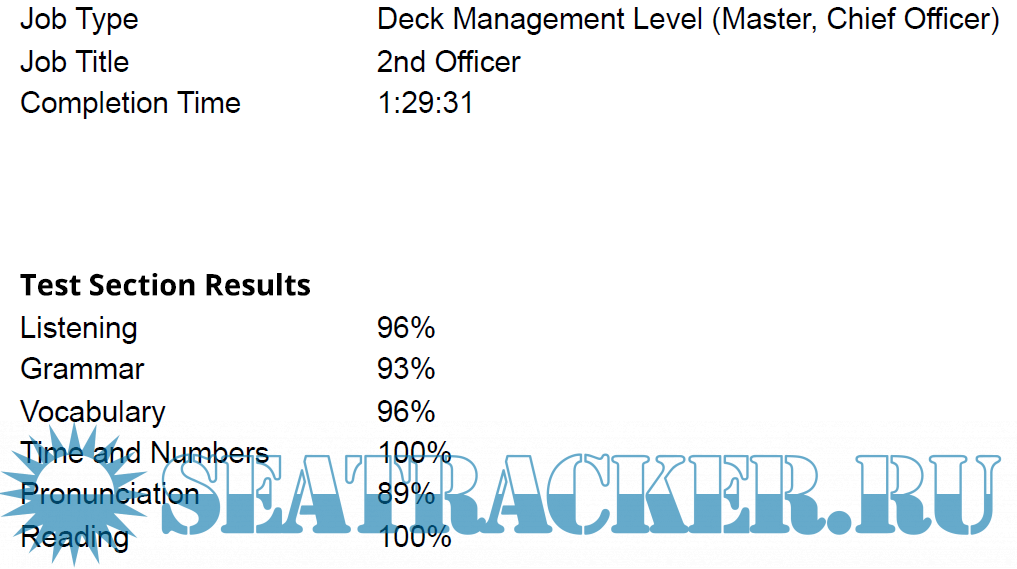 Additional info: Тест для старшего офицерского состава. В некоторых компаниях требуют именно этот уровень для всех Штурманов/Судоводителей
