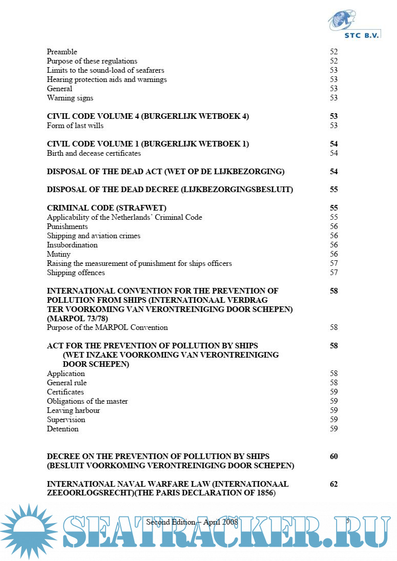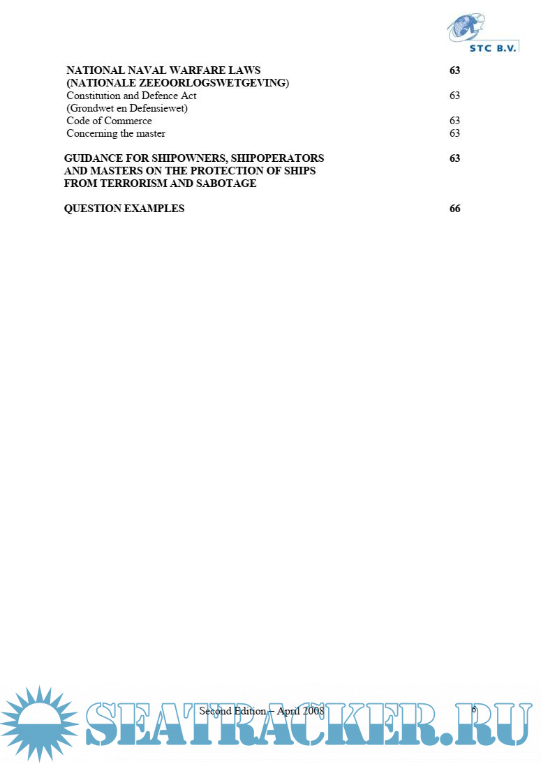 As it is an impossible task to deal with all this in detail, only outlines have been stated in this book. This will provide the Master, the Chief Officer and the Chief Engineer, which intend to work on board of any of Duch fleet vessel, with minimal requsted knowlege of Duch legislations.