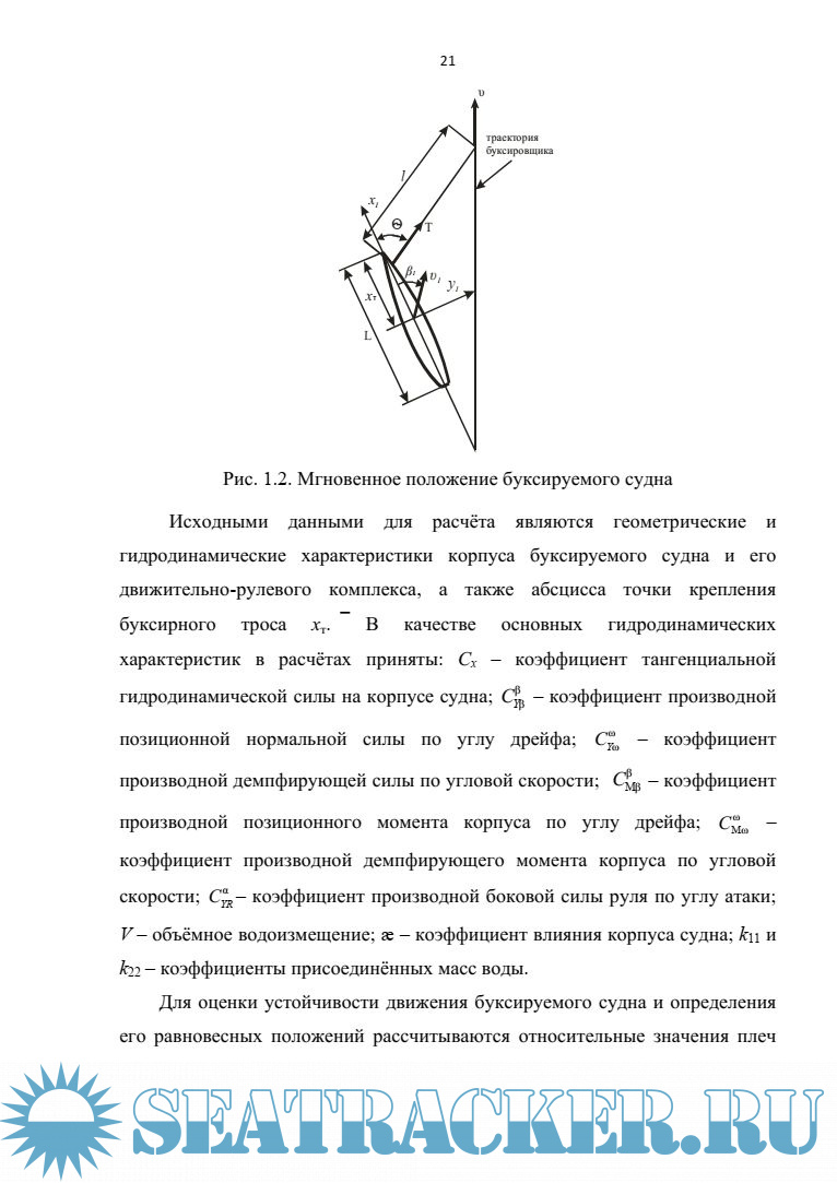 буксирный трос – буксируемое судно» определяются некоторыми свойствами управляемости системы двух связанных гибкой связью судов. Эти свойства до настоящего времени практически не исследованы, и, как следствие,