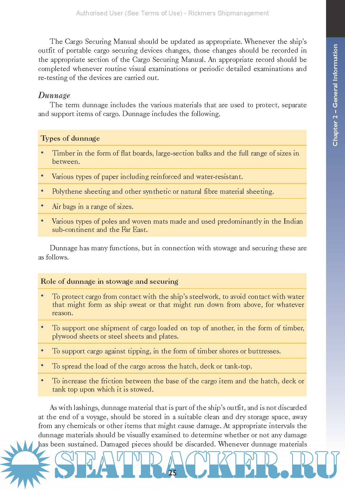Description: This publication is intended for general guidance only to assist in the avoidance of disputes and problems arising from inadequate or incorrect stowage and securing of items of cargo on cargo ships. Readers should take care to ensure that the recommendations contained in this publication are appropriate for a particular situation before implementing them.