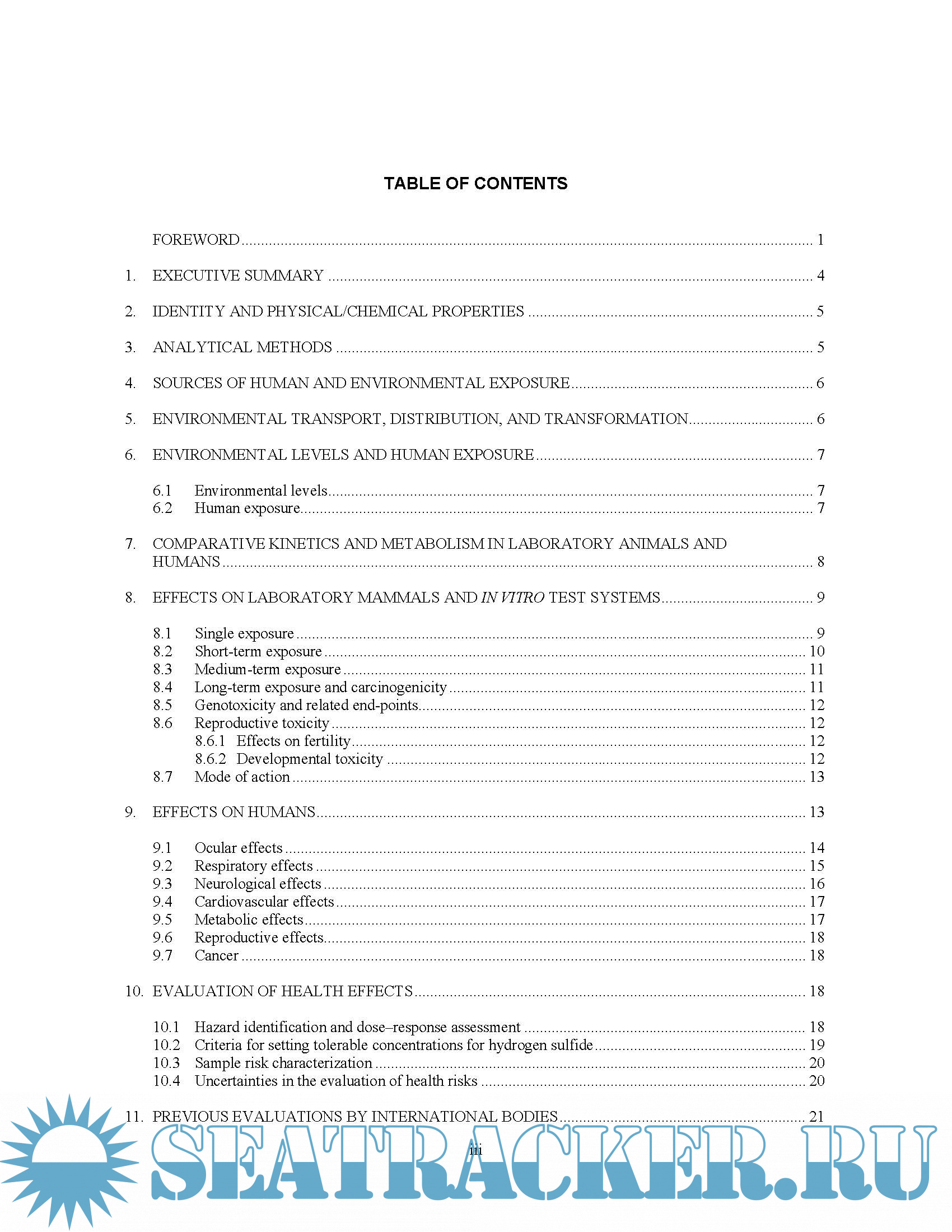 1) Hydrogen Sulfide: Human Health Aspects, WHO 41 Pages, (Concise international chemical assessment document ; 53) ISBN 92 4 153053 7 2) Hydrogen Sulfide Monitoring and Safety, Nova Safety & Environmental, 49 Pages (Presentation) 3) Hydrogen Sulfide, OSHA, 2 Pages, Fact Sheet