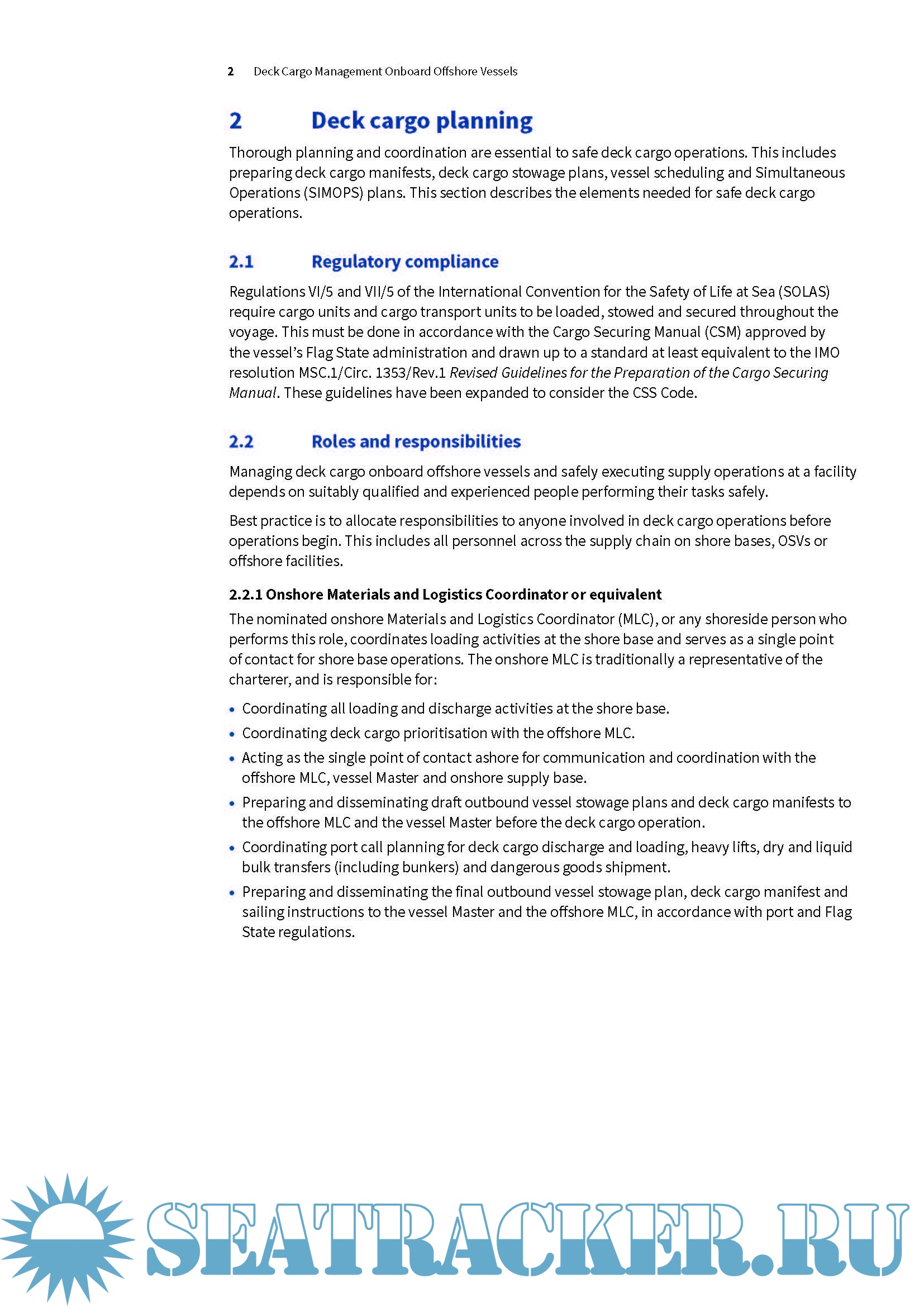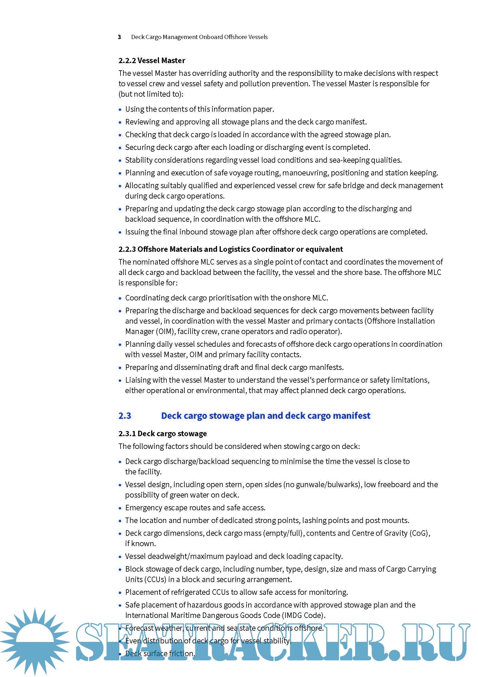 • Accountability of key personnel involved in safe deck cargo handling operations.