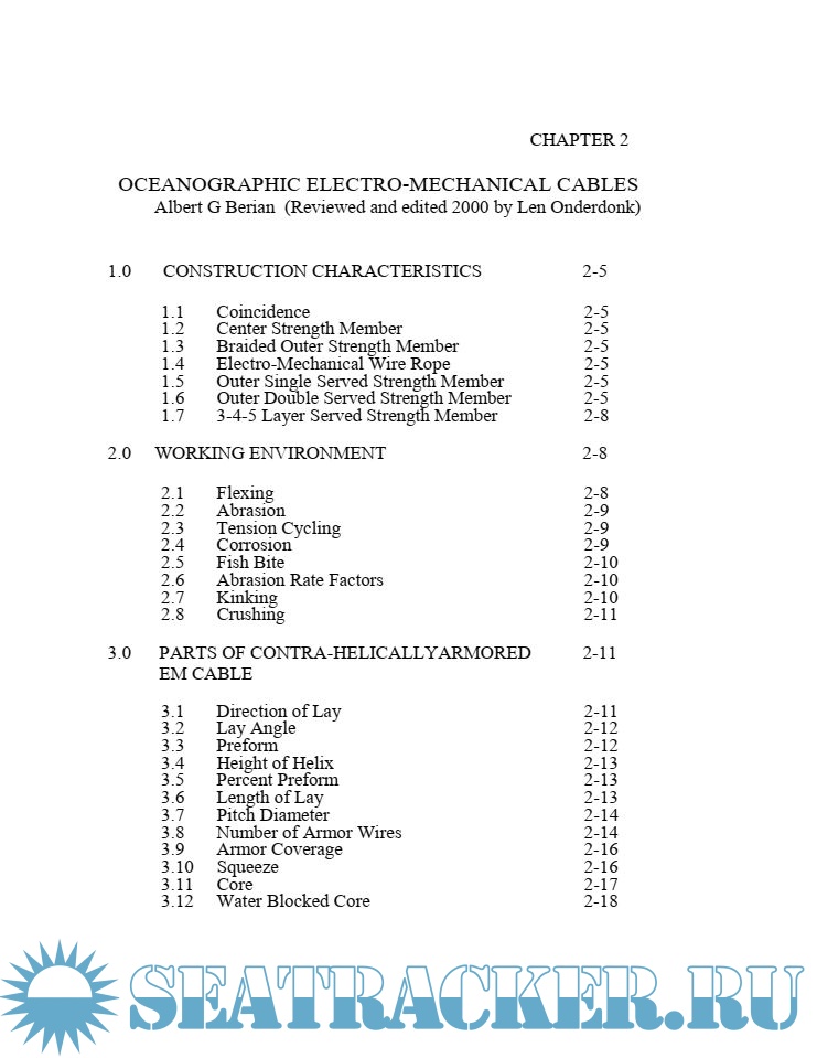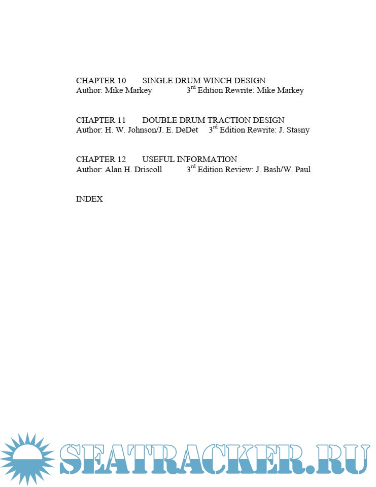 Year: 2001 Language: english Author: J.Bash Edition: Third Format: PDF Quality: Scanned pages + text layer Pages count: 566 Description: This third edition to the Handbook of Oceanographic Winch, Wireand Cable Technology has been prepared to provide a reference andguide for the operation, handling and care of winches, wires, cablesand oceanographic rope for the operators and scientists of theoceanographic community. This handbook contains information suitable to initiate a carefulreview of existing winch systems as well as being useful for thespecification of upgrades or new systems. It is the hope of the authors that this handbook will serve as a ready reference for boththe oceanographic and commercial communities, now and in the future.