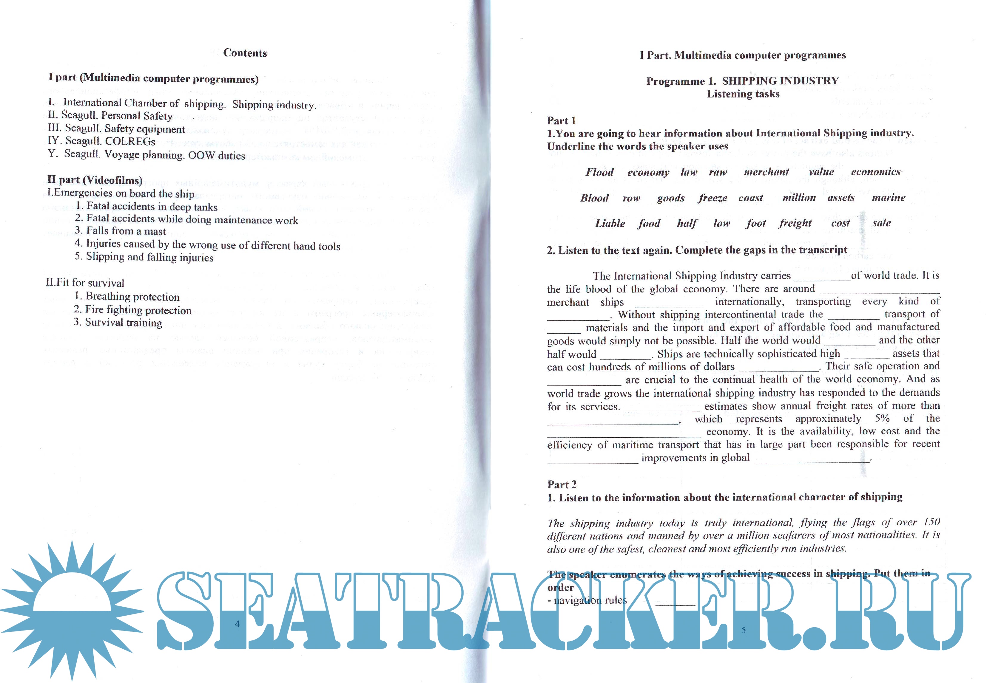 Описание: Методические указания состоят из двух частей. 1 часть представляет собой цикл упражнений, способствующих развитию навыков чтения, аудирования, говорения на основе нижеуказанных профессиональных компьютерных программ и их интерактивное использование в ситуациях профессионального общения. 2 часть включает цикл упражнений на основе видеоматериалов, направленной большей частью на развитие навыков аудирования и говорения при помощи анализа предлагаемых реальных ситуаций на борту судна и обсуждения возможных решений в рамках групповой дискуссии.