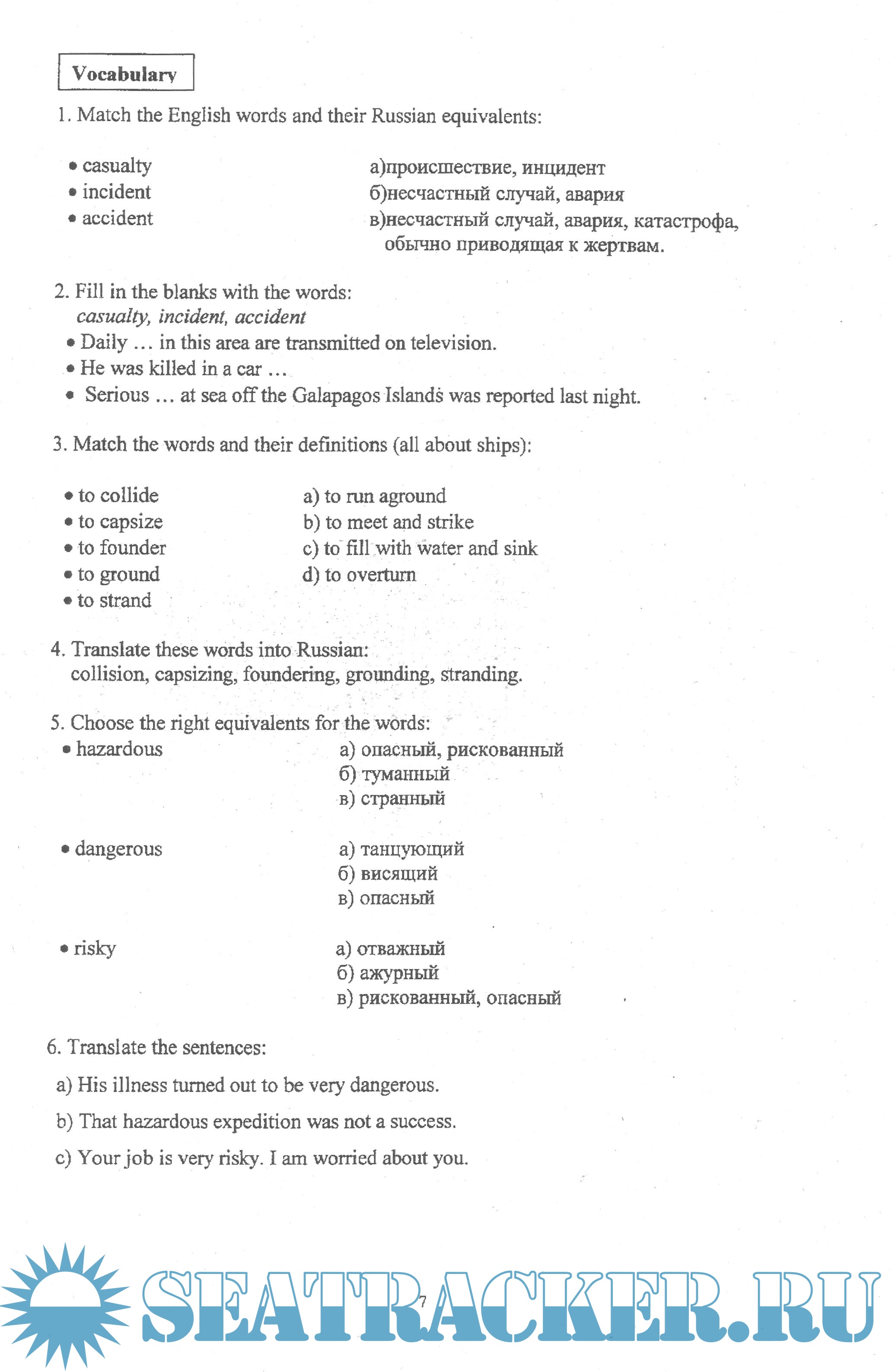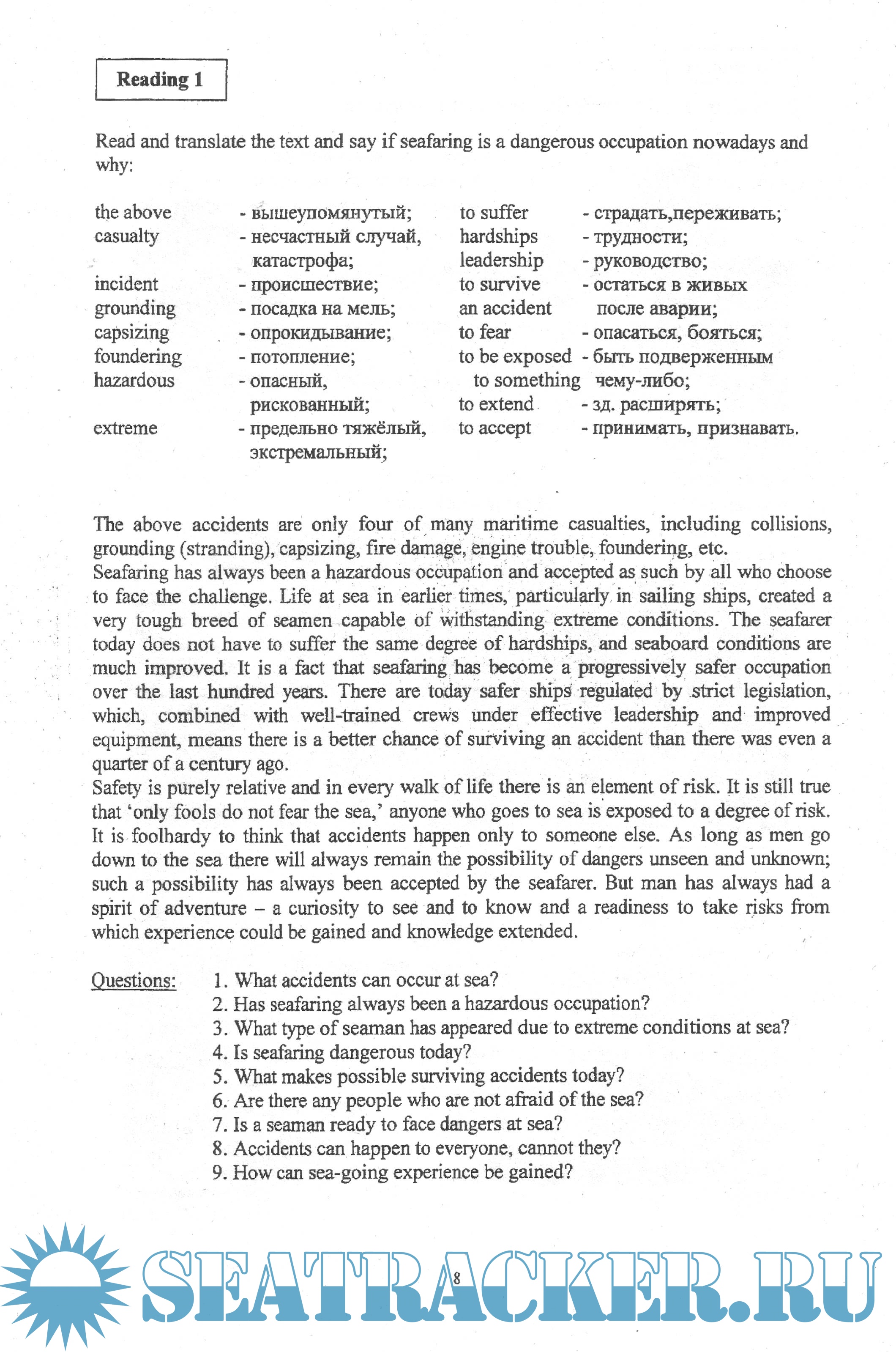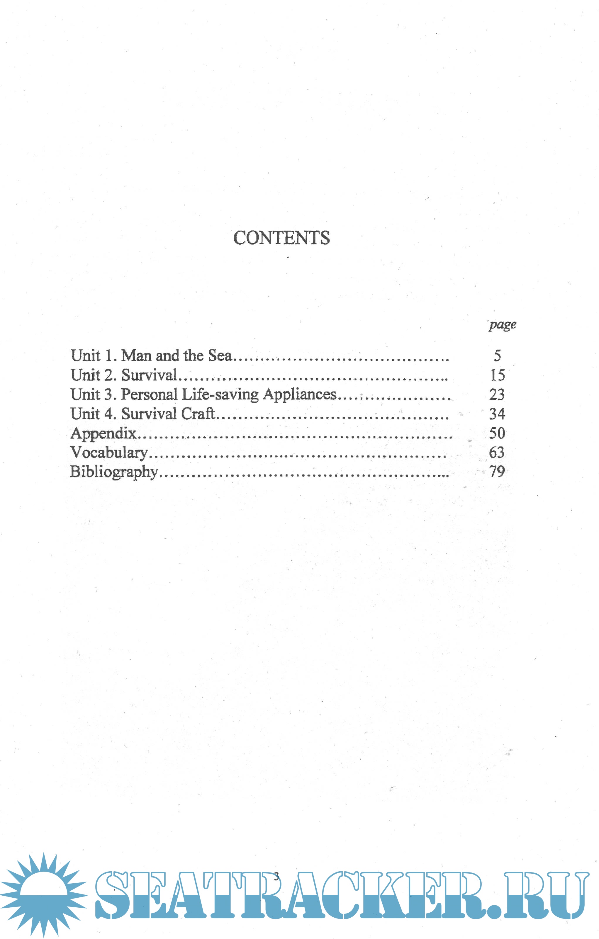 Описание: Предлагаемое учебное пособие, составленное в соответствии с утвержденной Министерством транспорта РФ программой по дисциплине английский язык специальности "Судовождение", знакомит курсантов с индивидуальными и коллективными средствами спасения, их описанием и использованием в аварийной ситуации, а также учит рассказывать о них и давать инструкции по их применению.