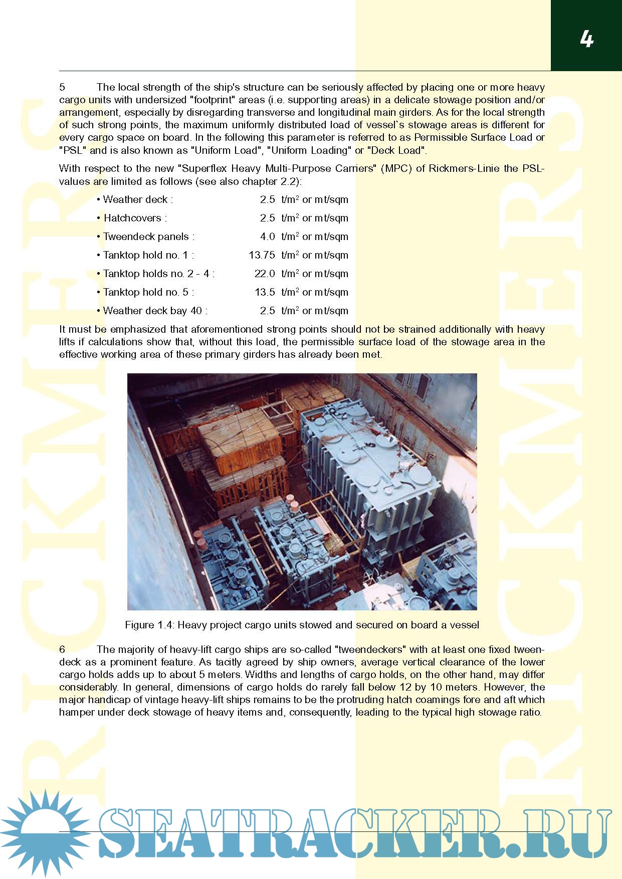 Description: This Rickmers Standard is considered the main reference for planning, handling, stowage and securing/lashing of project cargo in general. It applies to all vessels chartered and/or owned by Rickmers-Linie.