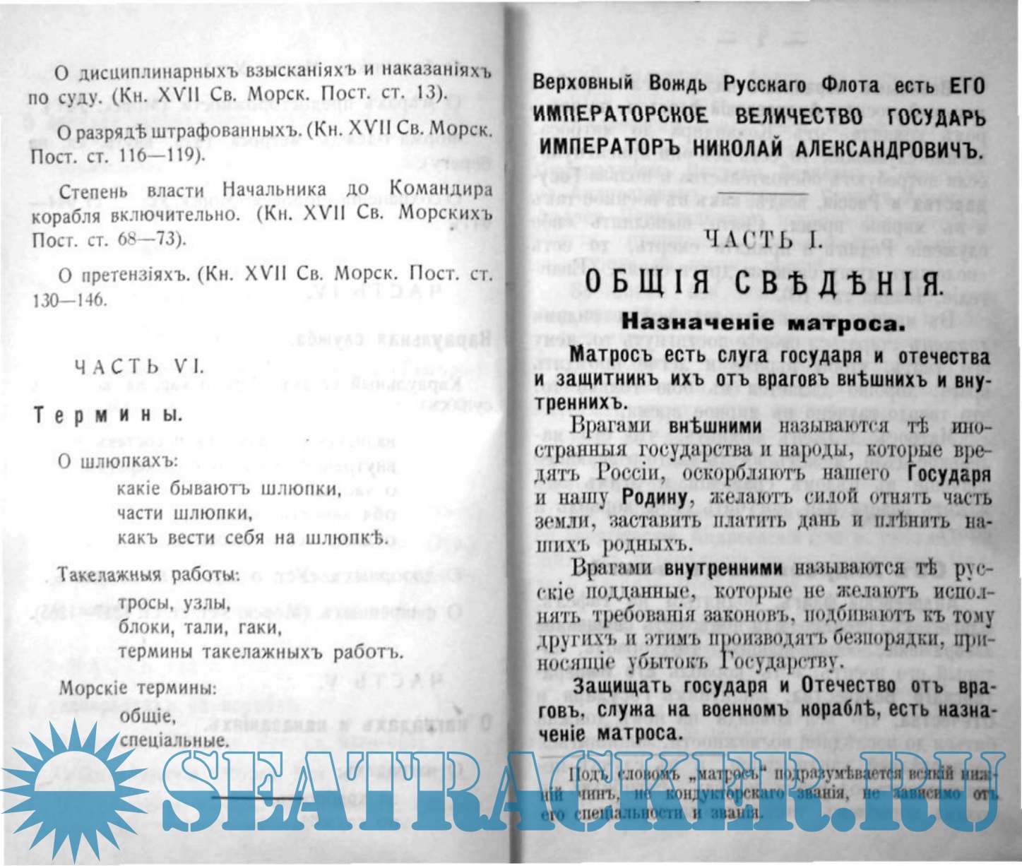 Описание: " Матрос есть слуга государя и отечества и защитник их от врагов внешних и внутренних.