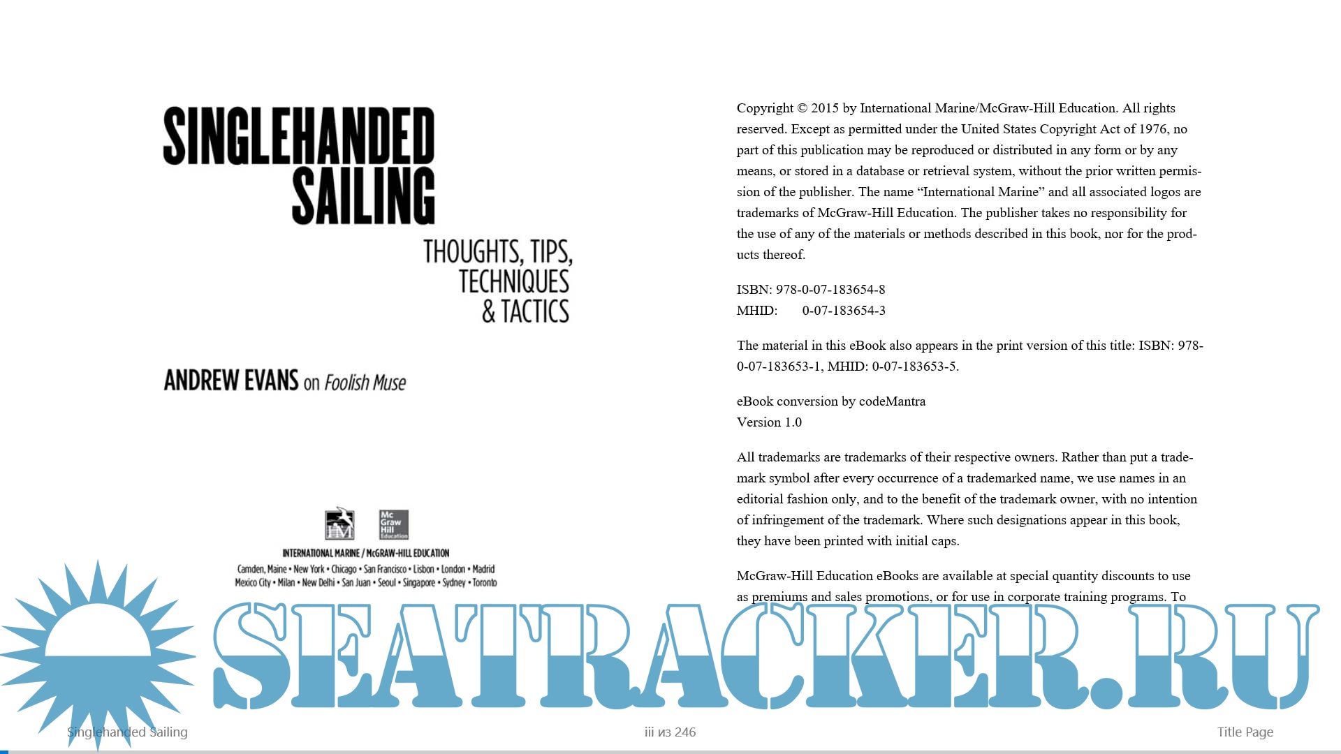 Year: 2015 Language: english Author: Andrew Evans Genre: Guide Publisher: McGraw-Hill Education ISBN: 978-0-07-183654-8 Format: EPUB Quality: eBook Pages count: 246 (depends upon the screen resolution) Description: "It takes thousands of hours of sailing to get the kind of knowledge contained in this book." -- from the Foreword by Bruce Schwab The ONLY bible for how to sail your boat fast, safe, and alone Solo sailing is within any sailor's grasp with a little forethought--and this essential guide. Got a 35-foot sailboat? No problem. Is the wind blowing 20 knots? No problem. Are you racing offshore overnight? Even better. Singlehander Andrew Evans learned the hard way how to sail and race alone--with lots of mishaps, including broaches and a near tumbling over a waterfall--and in Singlehanded Sailing he shares the techniques, tips, and tactics he has developed to make his solo sailing adventures safe and enriching. PS See my other releases: https://seatracker.xyz/tracker.p...id=54420#results