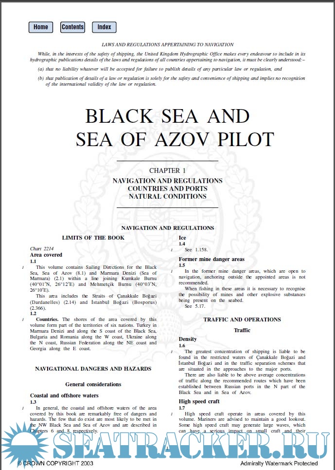 Year: 2003 Language: english Author: Dr. D.W.Williams Genre: Reference book Publisher: The United Kingdom Hydrographic Office Edition: 1st Format: PDF Quality: eBook Pages count: 292 Description: The First Edition of the Black Sea And Sea Of Azov Pilot has been prepared by Capitan R.D.Peddle, Master Mariner, and contains the latest information received in the United Kingdom Hydrographic Office to the date given below. This edition supersedes the 13th Edition of the Black Sea Pilot (2000), which is cancelled. Information on climate, currents and ice has been based on data provided by the Meteorological Office, Bracknell. PS See my other releases: https://seatracker.xyz/tracker....id=54420#results