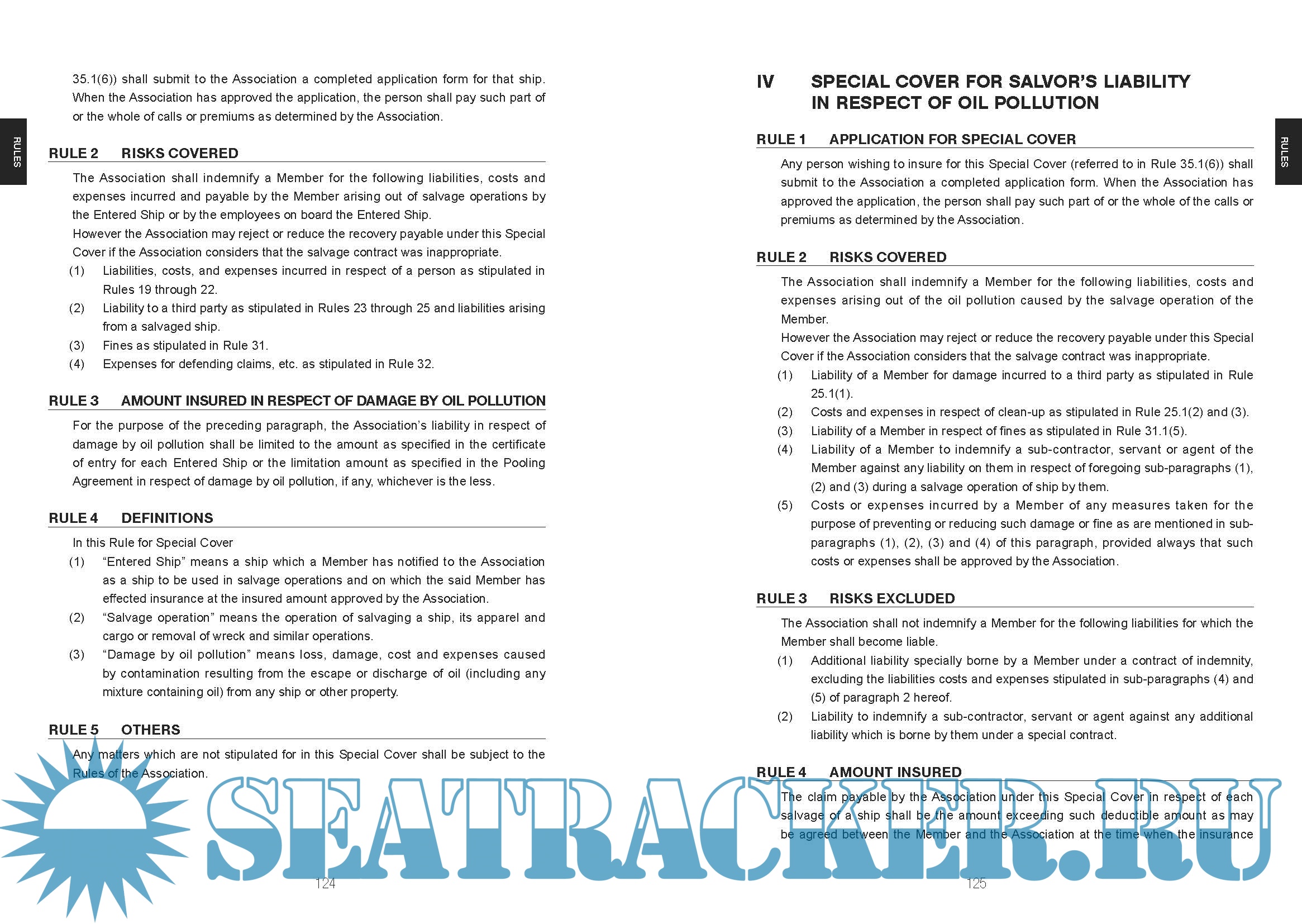 Year: 2019 Language: english Author: Japan P & I Genre: Convention (rules) Format: PDF Quality: eBook Pages count: 38 Description: Any person desiring to insure his ship shall submit to the Association an application form (hereinafter including an “Application for Membership” which is to be submitted to the Association by a person becoming a Member) with his signature or seal affixed stating the ship which is a subject matter of insurance (hereinafter, meaning the ships defined as non-wooden steam or motor ships or other ships in “the Ship Law” or other laws and which are recognised as the ships by the Association, referred to as an “Entered Ship”) and other items specified therein. If and when the Association approved the application, the person shall pay a part or whole of calls or premiums.