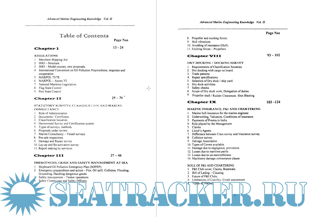 The Marine engineer's work covers various fields, which are normally done by Specialists. In this Volume we have covered various fields in greater detail, such as Certification / Role of Classification Societies, New construction activity, P&I / Marine Insurance, Vibrations in"" ships, Fire protection! Emergency preparedness at Sea.