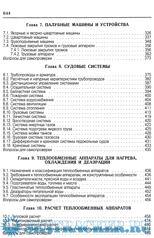 Description: Изложены основы теории и технической эксплуатации судовых машин, установок, устройств и систем, насосов, воздушных компрессоров, сепара­торов топлива и масла, электрогидравлических рулевых машин, палубных механизмов и устройств, судовых систем, теплообменных аппаратов, конден­сационных и водоопреснительных установок; приведены их принципиальные схемы, рассмотрены типовые конструкции, способы регулирования и управ­ления; приведены методики расчета рабочих процессов, основных параметров и характеристик. Отдельная глава посвящена спасательным устройствам и средствам. Учебник соответствует программе дисциплины "Судовые вспомогатель­ные механизмы, системы и их эксплуатация" и предназначен для курсан­тов (студентов) по специальностям: "Эксплуатация судовых энергетических установок", Автоматизированное управление технологическими процессами" ( специализация "Автоматизированное управление судовыми энергетическими установками") и "Электрические системы и комплексы транспортных средств" (специализация "Эксплуатация судовых автоматизированных систем"). Издание будет полезно для слушателей факультетов и центров повышения квалификации судовых специалистов и курсантов старших курсов морских учебных заведений третьего уровня.
