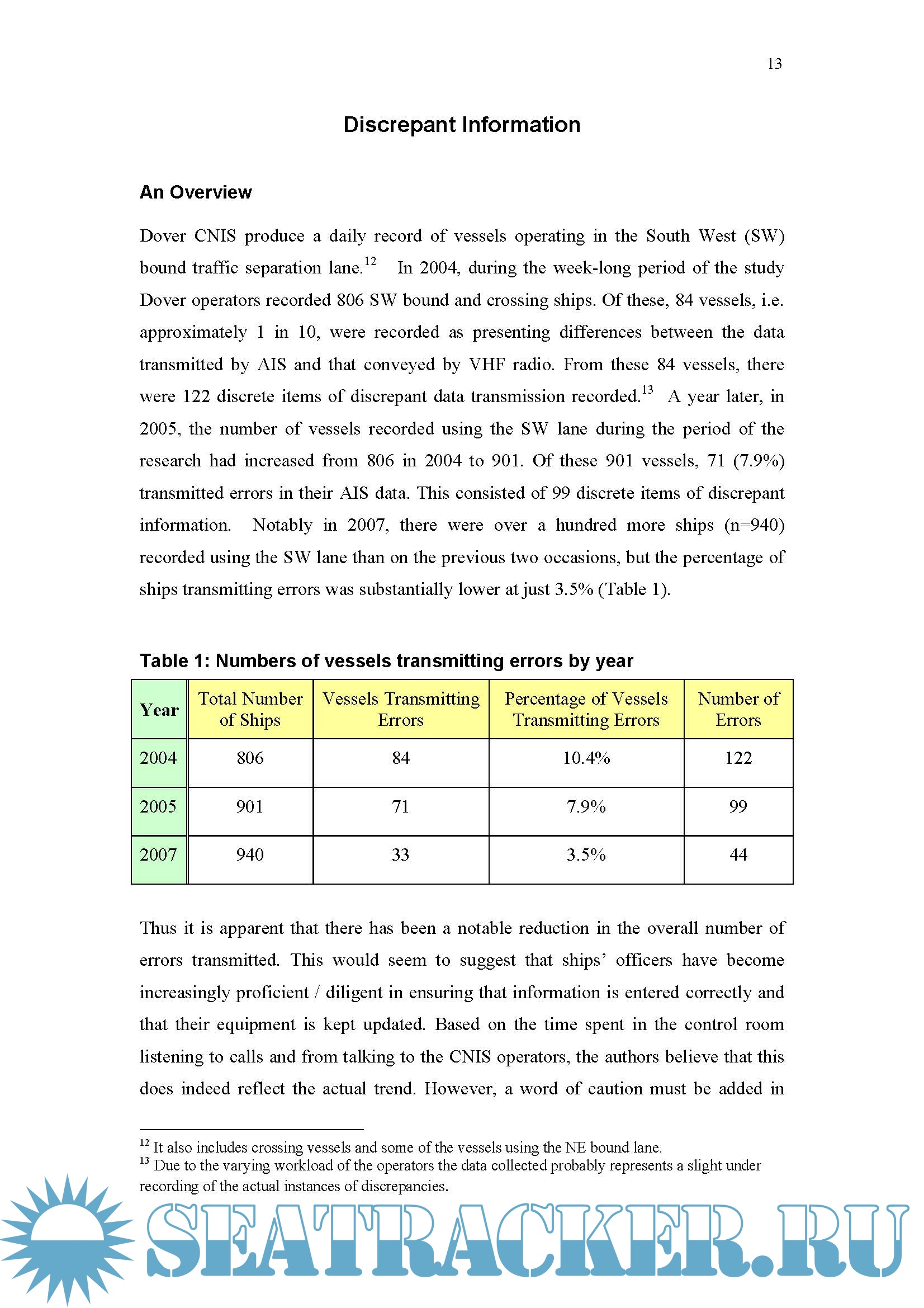 The report is based on data collected at three time points over a four-year period (October 2004, October 2005 and October 2007). The report indicates the levels of errors in the use of AIS and how these levels varied over time. It also considers the extent to which AIS appears to encourage the “improper” use of VHF radio for collision avoidance and the implications of this for training. The use of VHF radio to negotiate collision avoidance between ships has long been held to be a problem by many agencies concerned with navigation, such as, the UK Maritime Coastguard Agency (MCA).