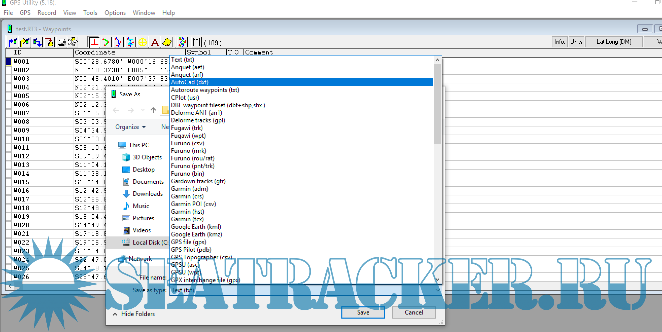 Arcan, Look up on the left corner, is not waypoint. Is a .rt3 route format imported in the software which can be exported in many other formats with the help of gpsutility