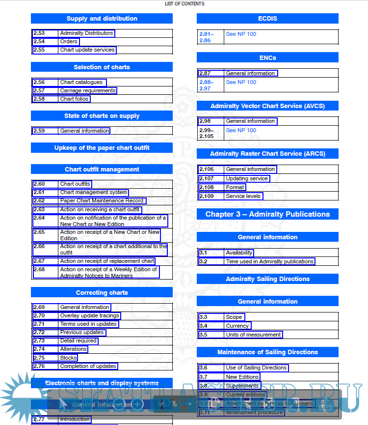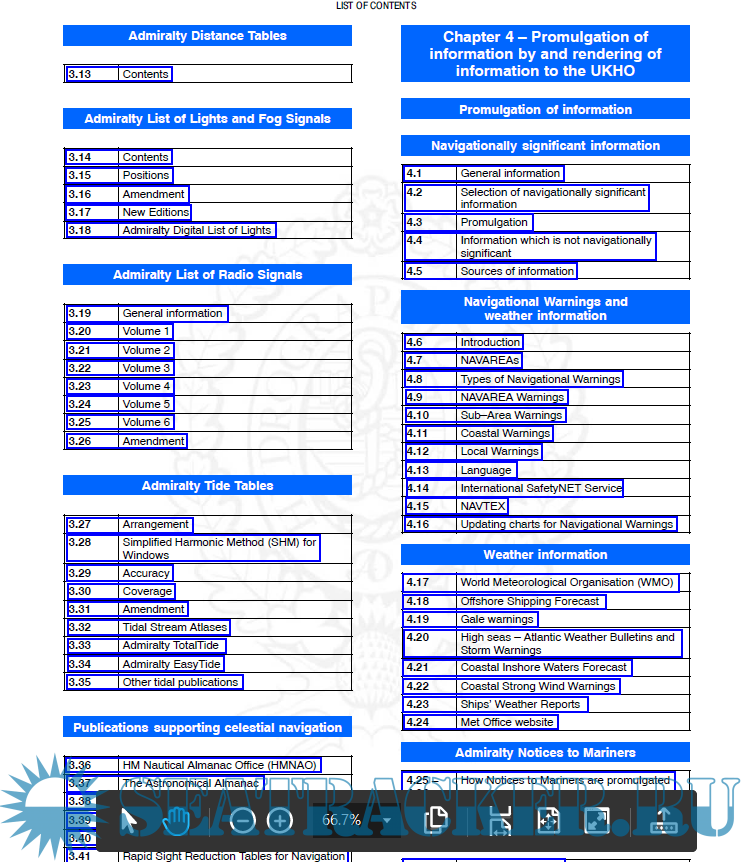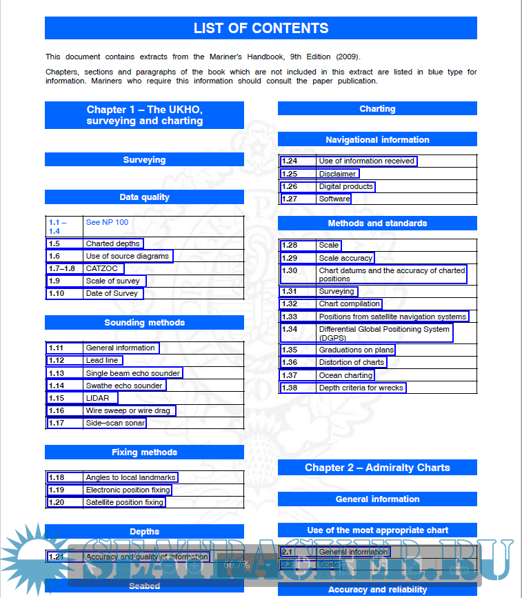 Year: 2009 Language: english Author: UKHO Format: PDF Quality: eBook Pages count: 102 Description: The Mariner's Handbook is one of a series of printed and digital publications designed to support the mariner. Many are mandated by the International Maritime Organisation (IMO) for carriage aboard certain classes of vessel.