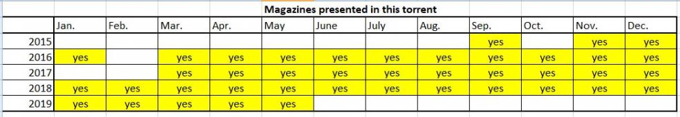 Pages count: different (from 130 till 216 per magazine)