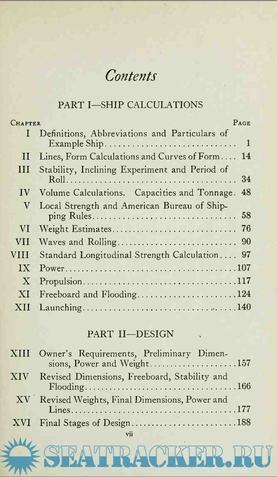 Year: 1944 Language: english Author: J. P. Comstock Genre: Textbook Publisher: Simmons-boardman Publishing Corporation Format: PDF Quality: Scanned pages + text layer Pages count: 247 Description: B EFORE finishing this hook the student will follow through the basic design of a ship; that is, he will choose the main characteristics of the ship so as to satisfy the owner's requirements. But before he can do this, he must know something of the various cak~1lations which are made, several times over, during a design; first very approximately, then, as the design takes definite shape, more and more accurately. The first twelve chapters are devoted to these subjects, using as a basis an example ship.