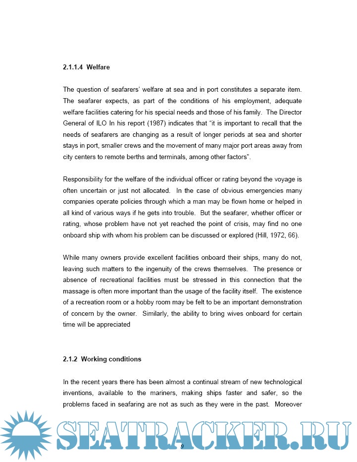 working conditions onboard, and how their social life at home town could affect