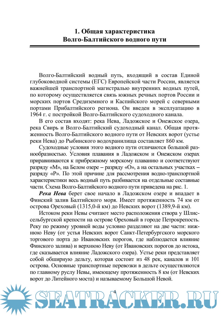 Описание: Изложена общая водно-транспортная характеристика реки Нева, Ладожского, Онежского и Белого озер, реки Свирь, Волго-Балтийского и Беломорско-Балтийского каналов. Показаны система разделения движения на Ладожском, Онежском и Белом озерах, а также особенности движения и стоянки судов при использовании этих водных путей. Дается судоходная характеристика реки Нева, Верхней, Нижней и Средней Свири, Волго-Балтийского и Беломорско-Балтийского каналов.