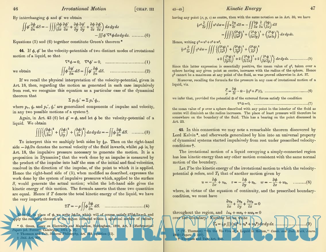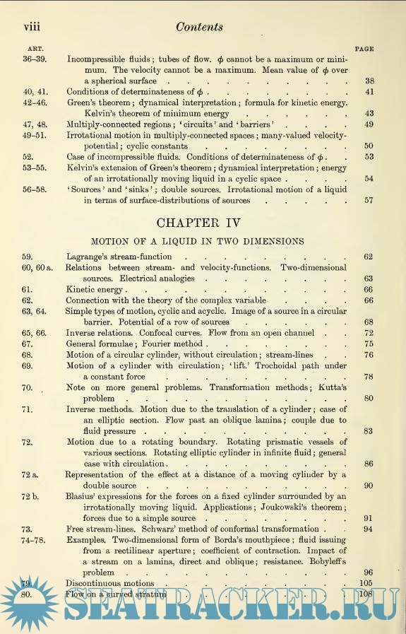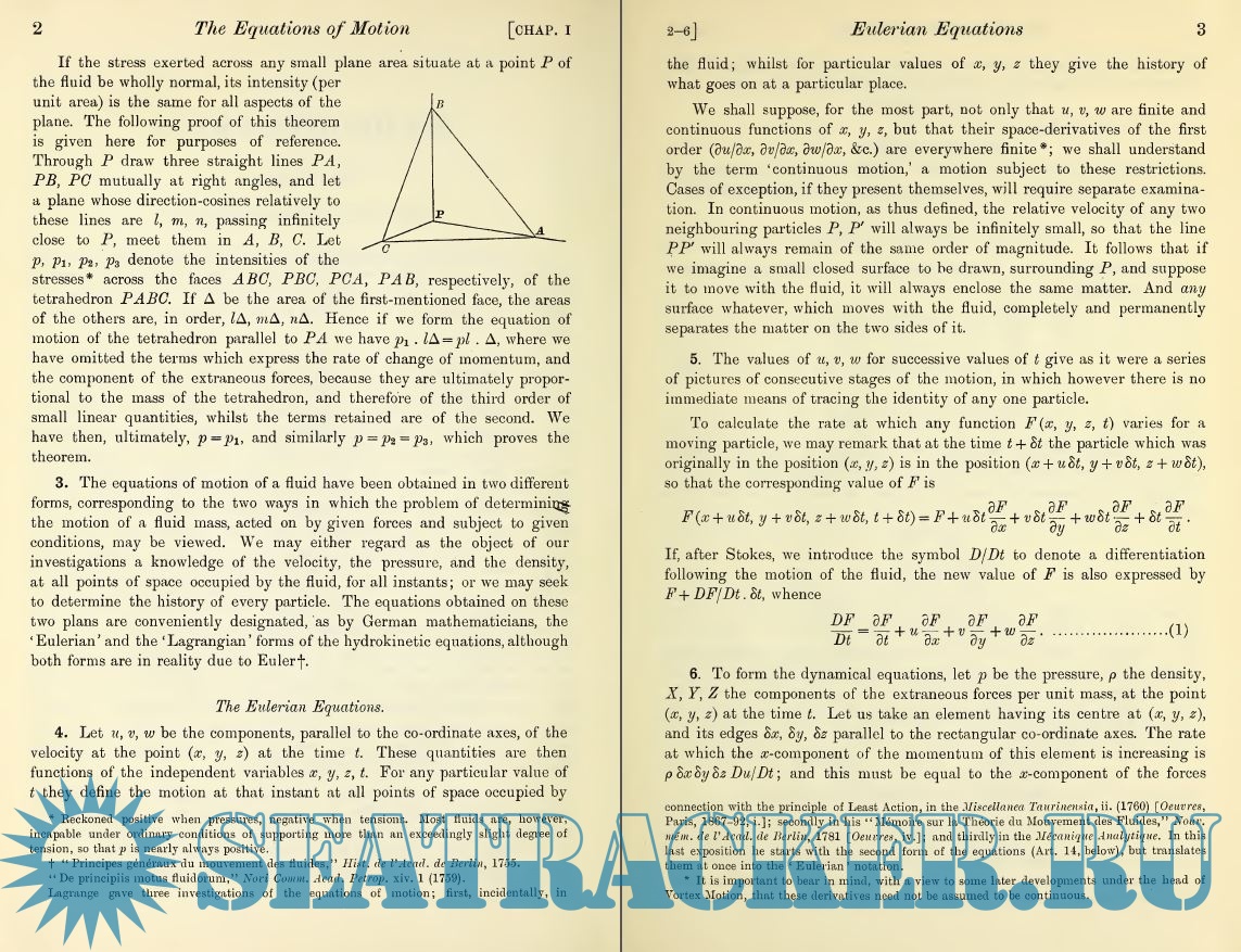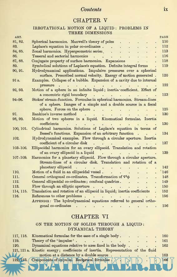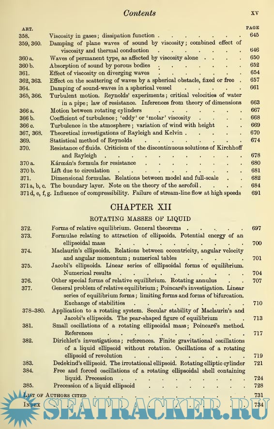 Year: 1879 Language: english Author: Horace Lamb Genre: Textbook Publisher: Dover Publications, Inc. Format: PDF Quality: Scanned pages + text layer Pages count: 760 Description: The subject has in recent years received considerable developments, in the theory of the tides for instance, and in various directions bearing on the problems of aeronautics, and it is interesting to note that the "classical" Hydrodynamics, often referred to with a shade of depreciation, is here found to have a widening field of practical applications. Owing to the elaborate nature of some of these researches it has not always been possible to fit an adequate account of them into the frame of this book, but attempts have occasionally been made to give some indication of the more important results, and of the methods employed.