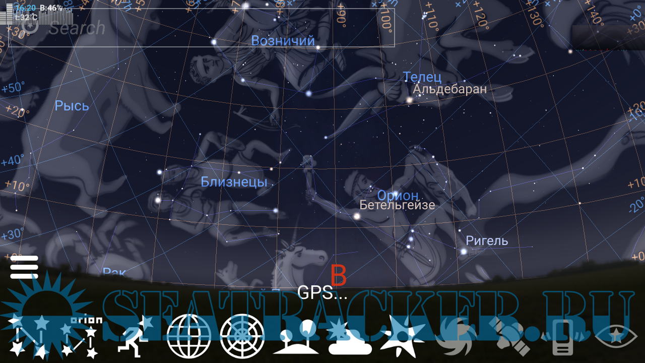 Полнофункциональным планетарий для андроида. Показывает реалистичное небо — вид невооруженным глазом, в бинокль или телескоп.