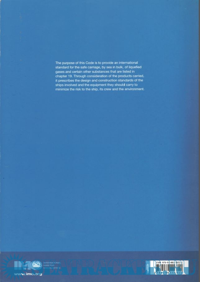 Additional info: The purpose of this Code is to provide an international standard for the safe carriage, by sea in bulk, of liquefied gases and certain other substances that are listed in chapter 19. Through consideration of the products carried, it prescribes the design and construction standards of the ships involved and the equipment they should carry to minimize the risk to the ship, its crew and the environment.