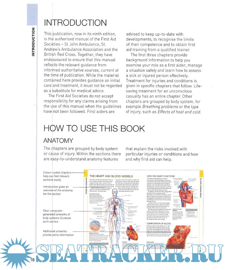 Year: 2009 Language: english Author: British Red Cross, St John Ambulance and St Andrew's Ambulance Association Genre: Guide Publisher: Dorling Kindersley Edition: 9th ISBN: 978-1-4053-3537-9 Format: PDF Quality: Scanned pages Pages count: 288 Description: The official training manual for all three first aid providers, offering emergency procedures for everyone at home, at work, or at leisure. Fully redesigned and restructured with bright colour coded chapters for quick and easy access on all the latest information on procedures.