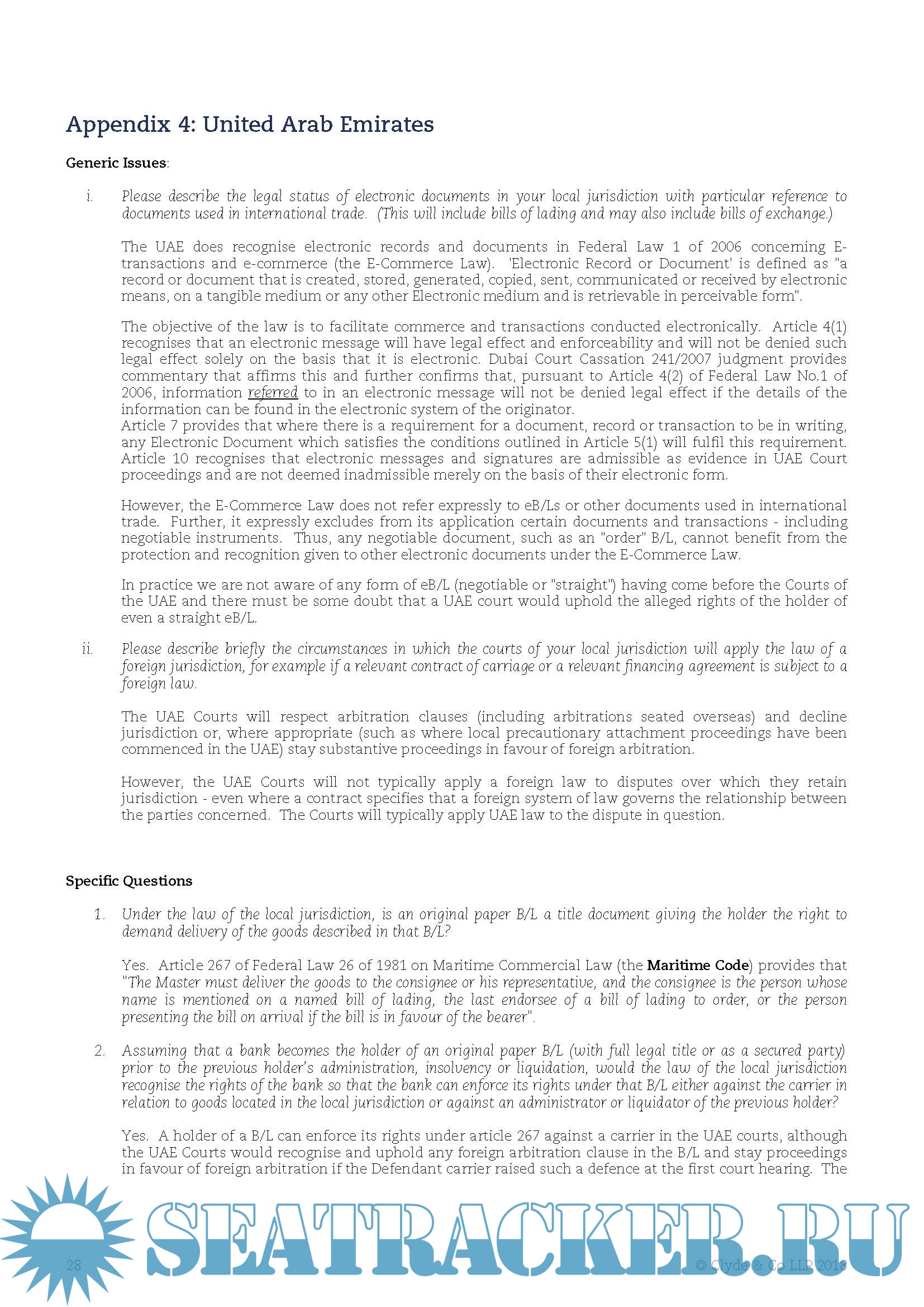Year: 2018 Language: english Author: Clyde & Co Genre: Research papers Format: PDF Quality: eBook Pages count: 60 Description: The International Chamber of Commerce Banking Commission, on the recommendation of the Legal Committee, appointed Clyde & Co LLP to conduct a survey on the legal status of eB/Ls, whether in the form of an electronic record or in paper format when converted from an electronic record. The survey covers the following ten jurisdictions: UK (English law), USA (NY law), Germany, Netherlands, UAE, China, Singapore, Brazil, India and Russia. This report sets out the relevant issues and the results of the survey.