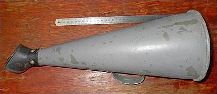 Это рупор, хотя интернет на запрос "рупор" усердно подсовывали мне на картинках современные электро-мегафоны. Хотя ВСЕМ ИЗВЕСТНО, что слово "мегафон" придумал Эдисон в 1878 году, а рупор изобрёл англичанин Сэмюэль Морланд в 1670-м.