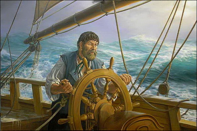 Представьте - качаются тропические звёзды в чёрном небе, волны падают вниз стремительным домкратом, поскрипывает штурвал в мозолистых руках рулевого. И великий мореплаватель, стоя рядом с ним, пытливо вглядывается в тёмный горизонт, озаряемый вспышками далёкой грозы.