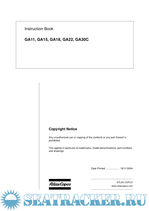 Instruction Book for Atlas Copco Deck Air Compressor (GA11, GA15, GA18, GA22, GA30C)