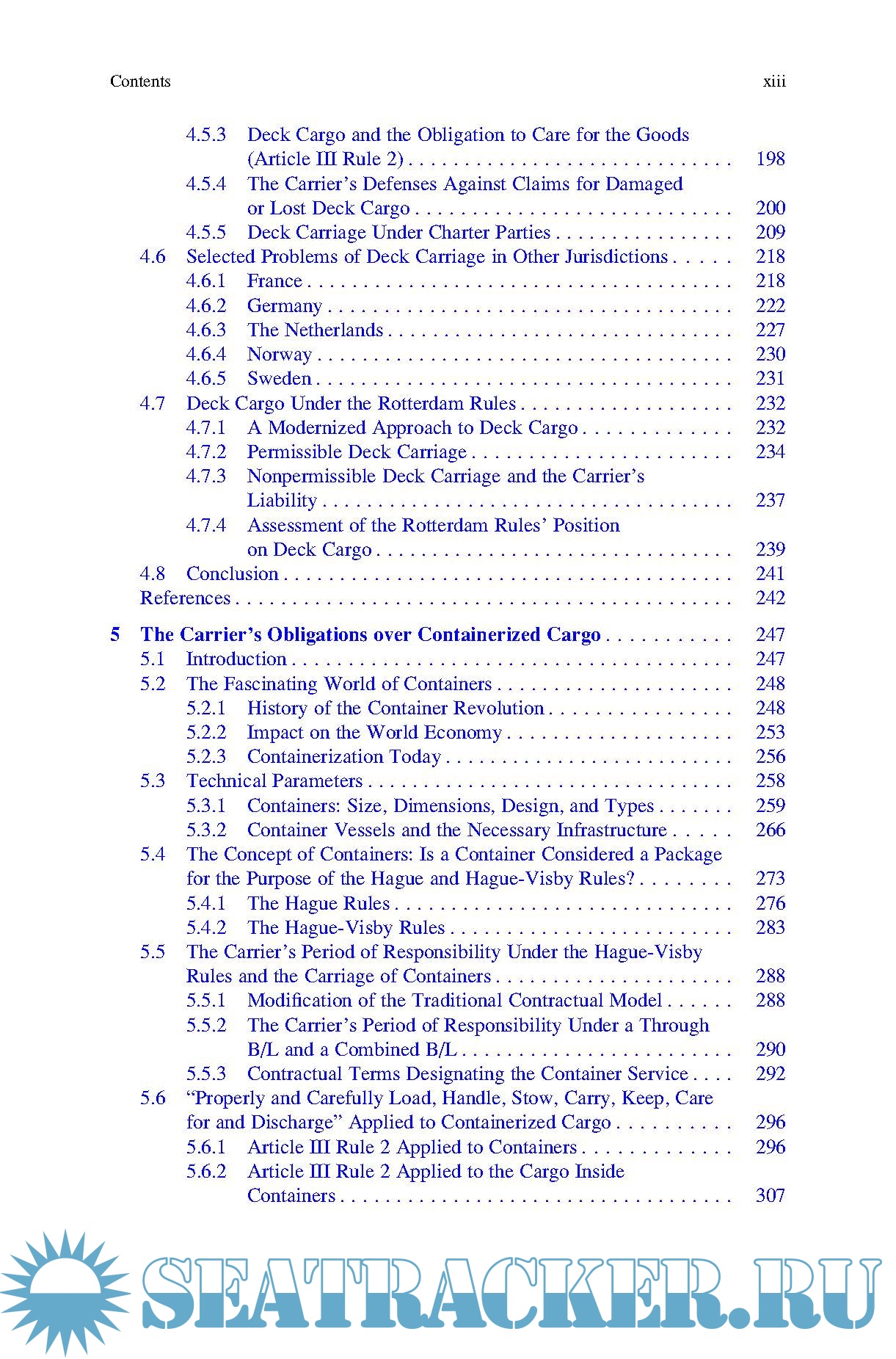 Description: This book addresses the legal and contractual obligations of sea carriers regarding due care for the cargo under a contract of carriage. While the general framework employed is the leading international liability regime, the Hague-Visby Rules, the discussions in each chapter also account for the possible future adoption of a new regime, the Rotterdam Rules.