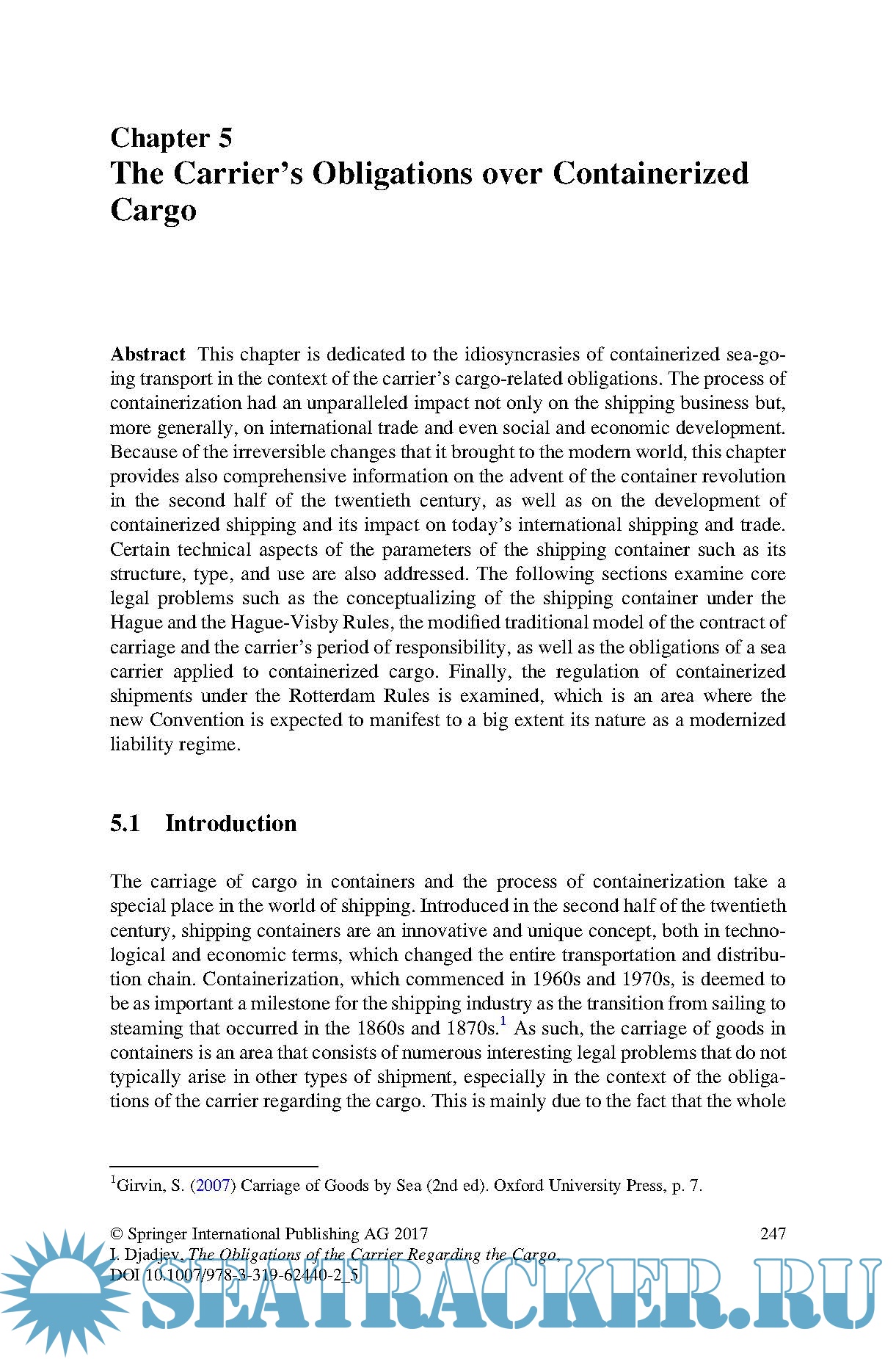 The subject matter concerns the standard for the duty of care for goods as codified in the Hague-Visby Rules, but the work also touches upon a wide range of related topics found both in law and in practice, providing valuable commercial, technical and historical links as well as various solutions that have been found at the national and international level to address challenges arising in this specialised area of law.